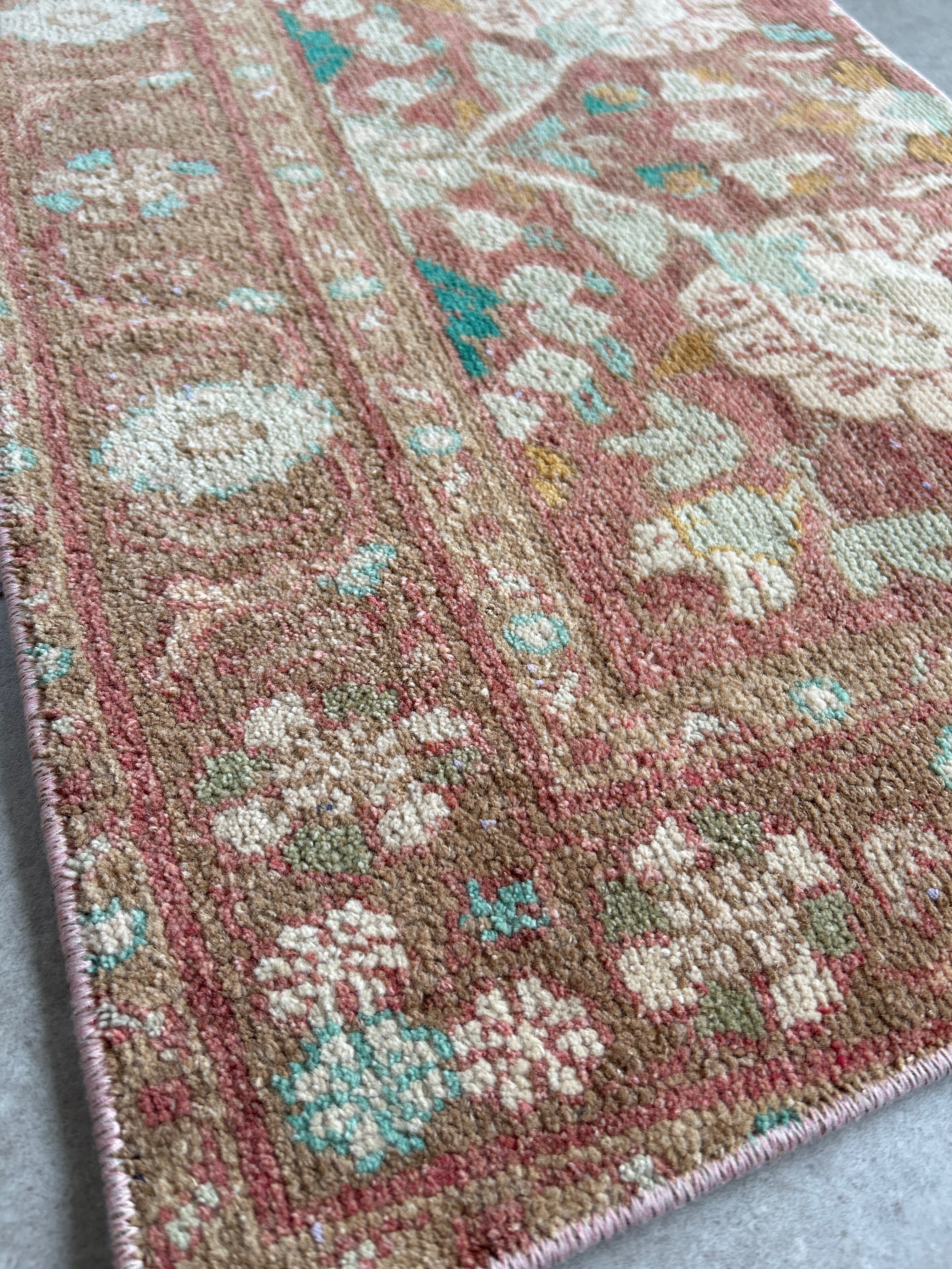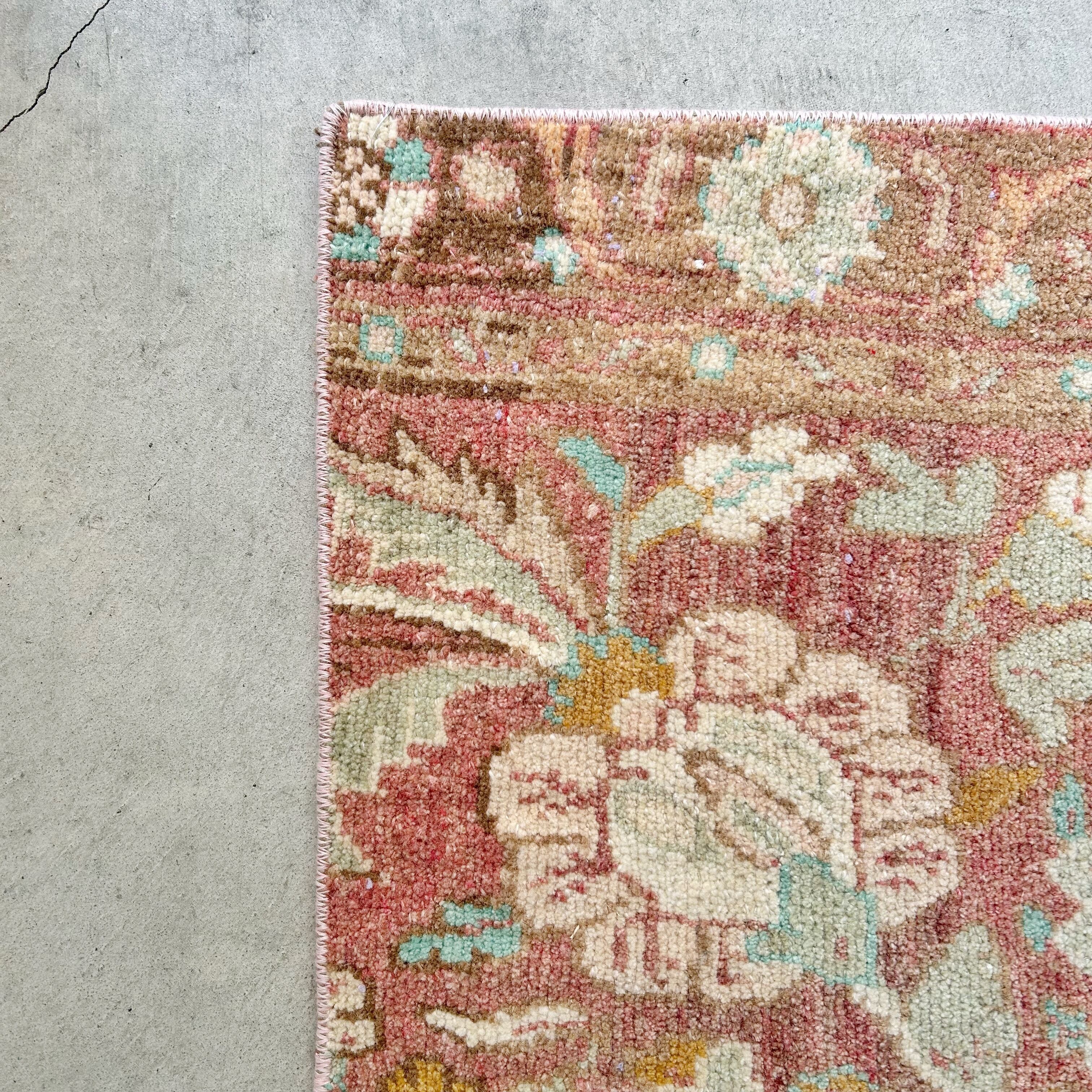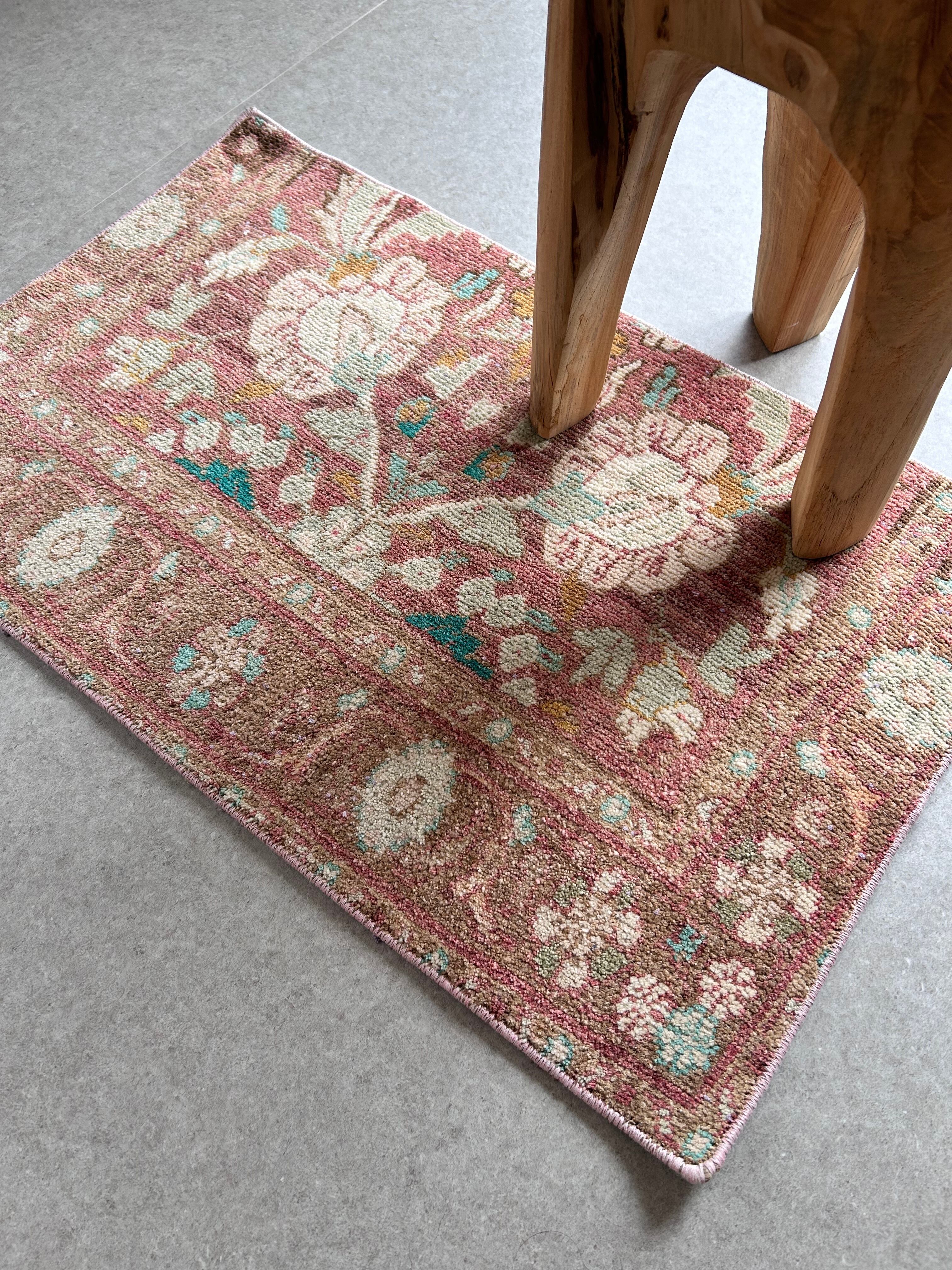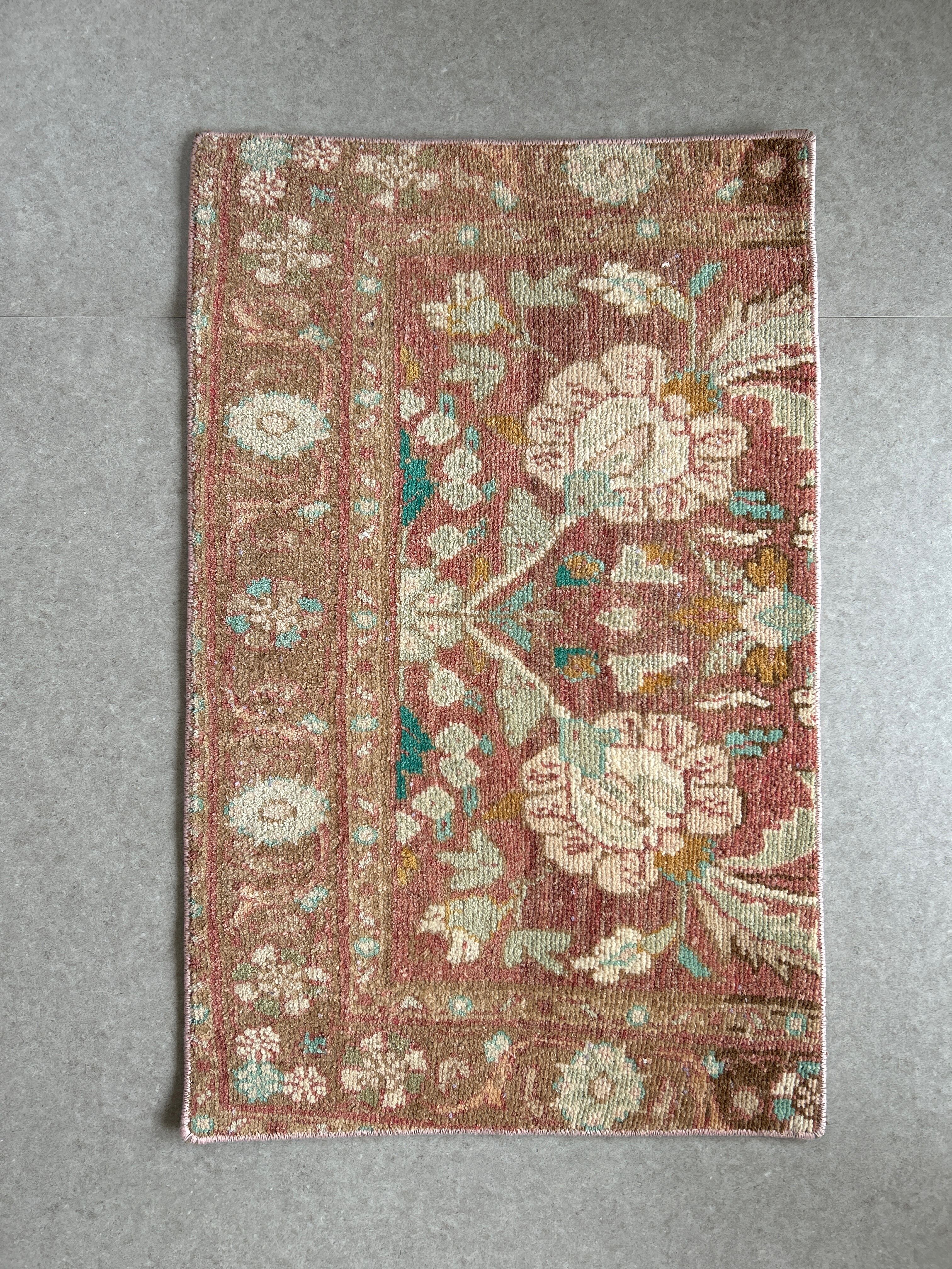 Vintage rug pink flower 76×47/ヴィンテージラグ トルコラグ