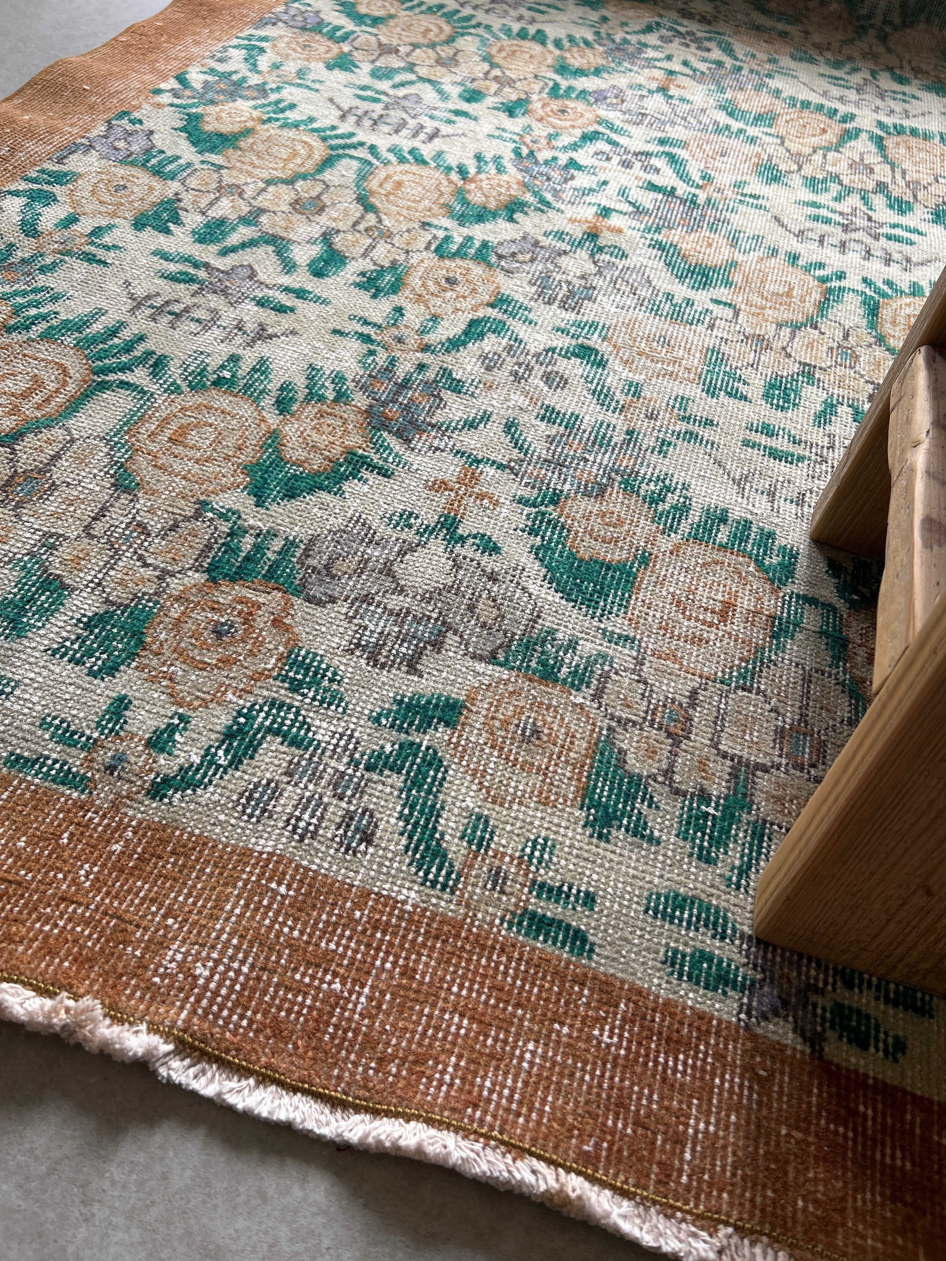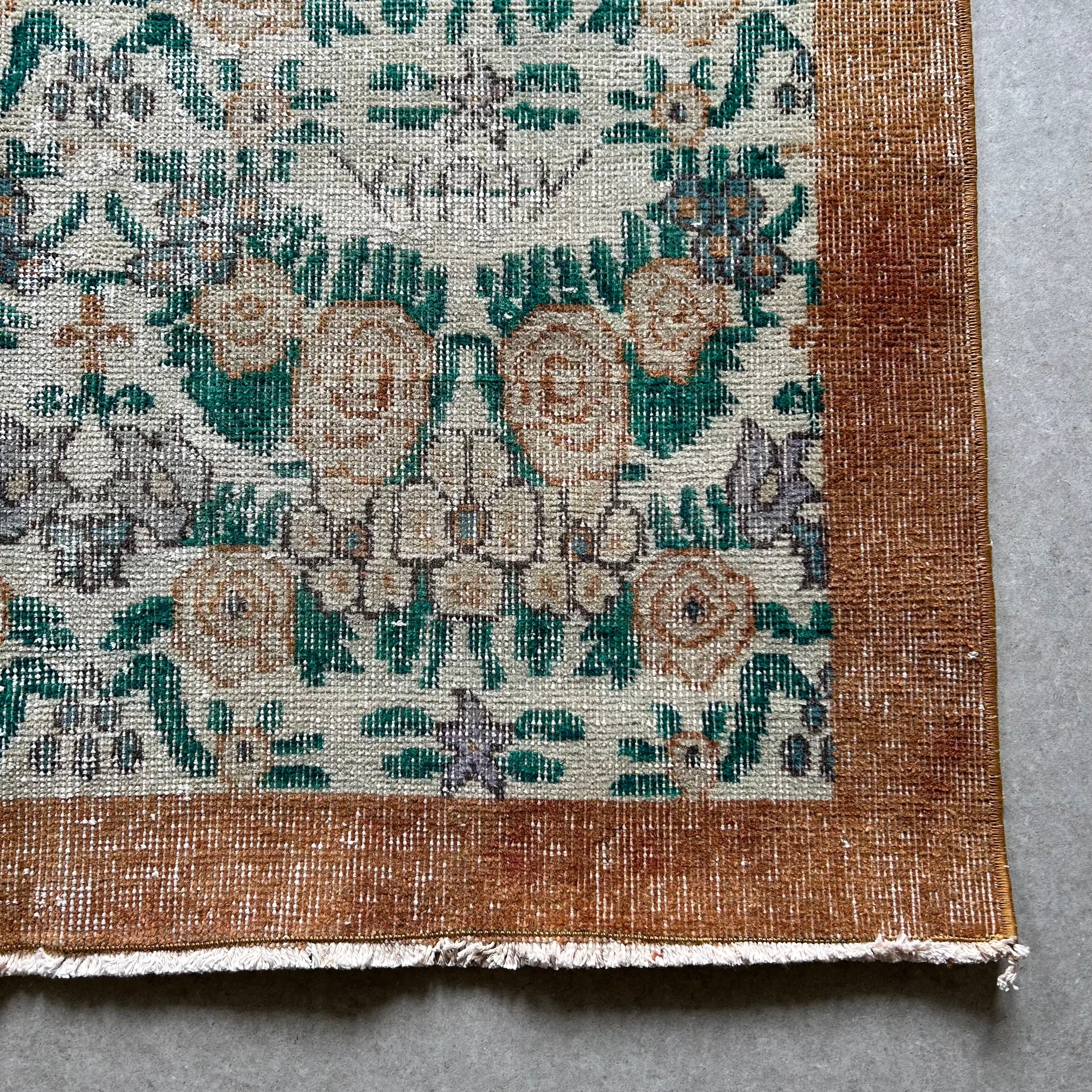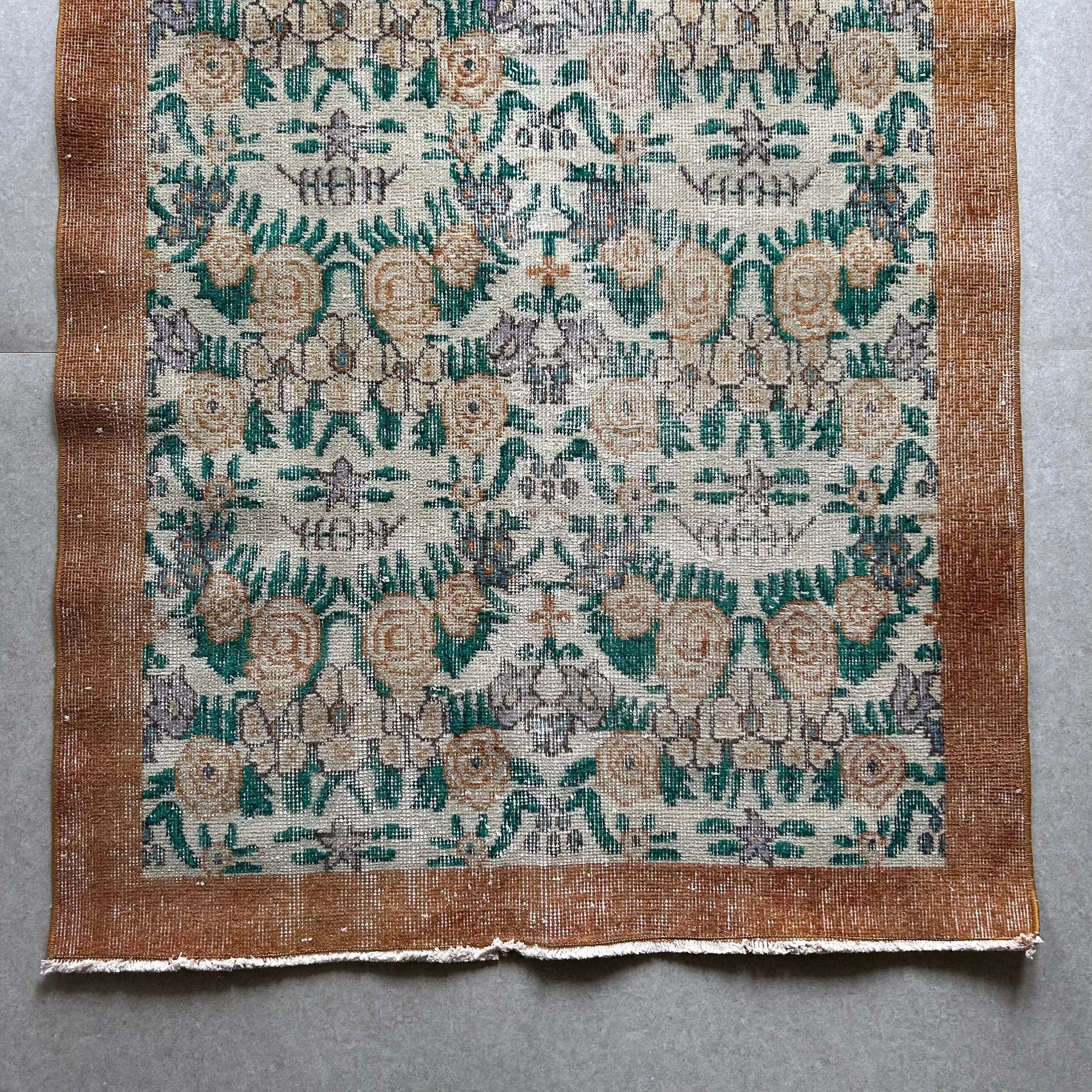 Vintage rug brown flower 200×110/ヴィンテージラグ トルコラグ