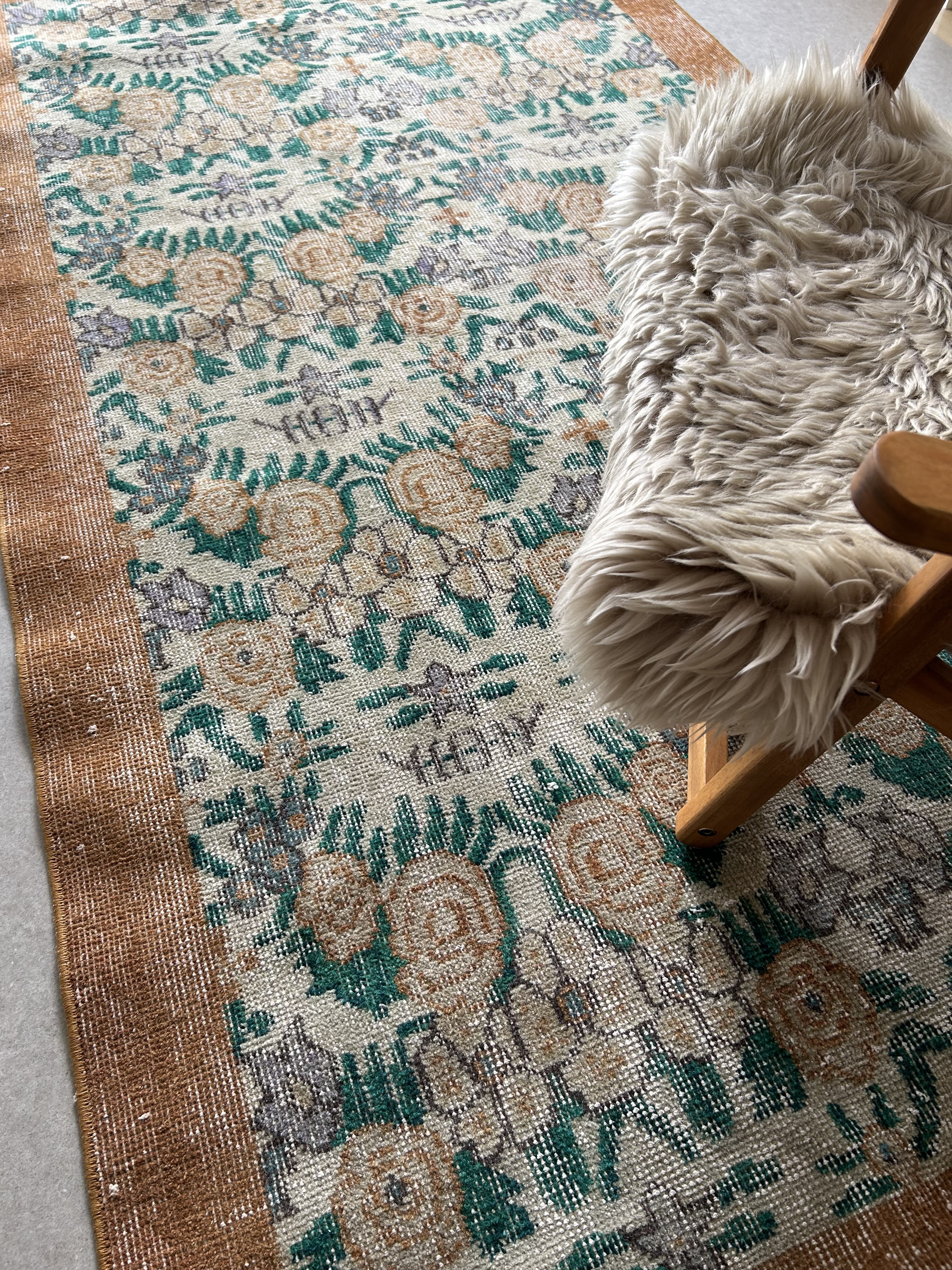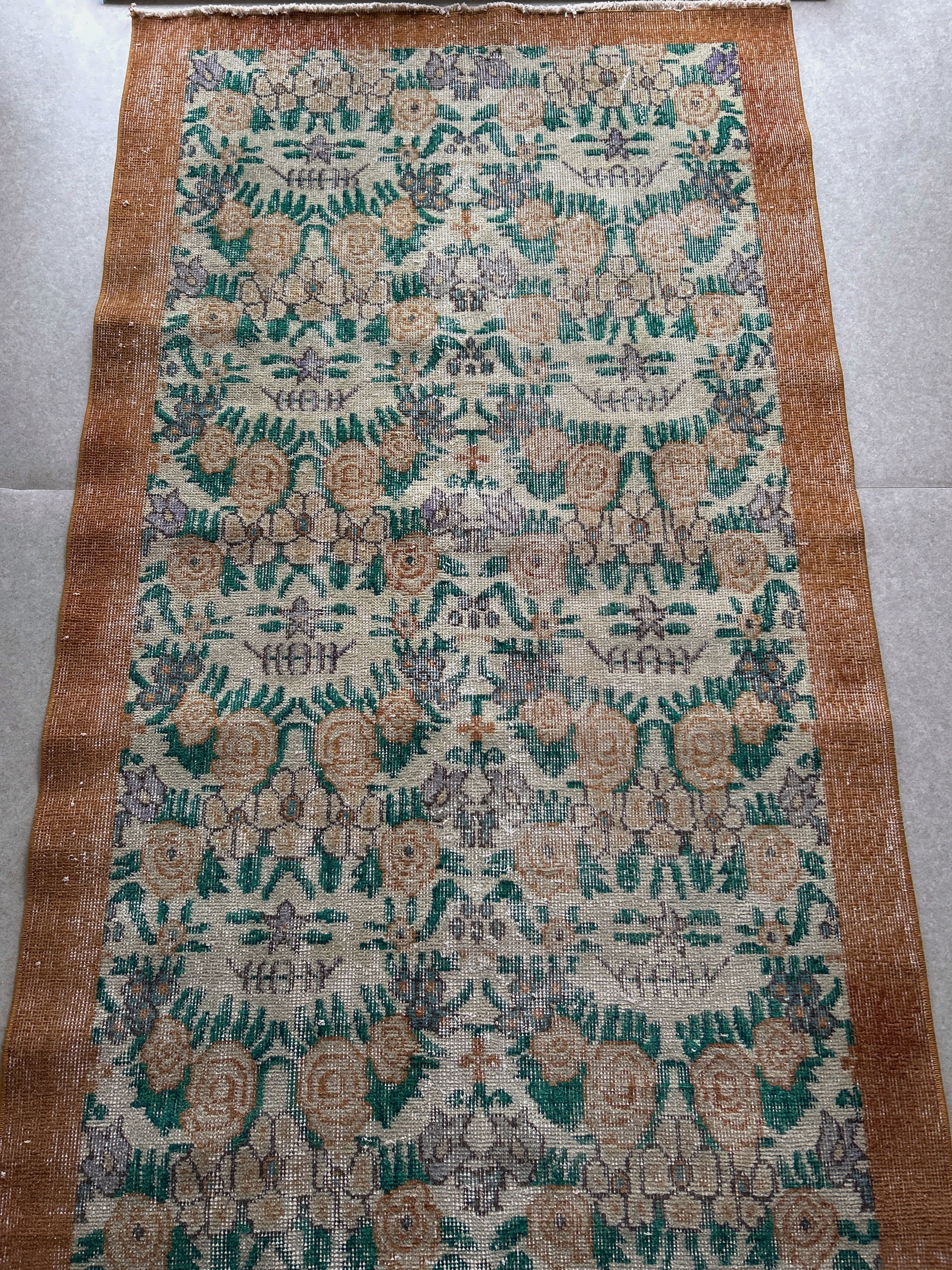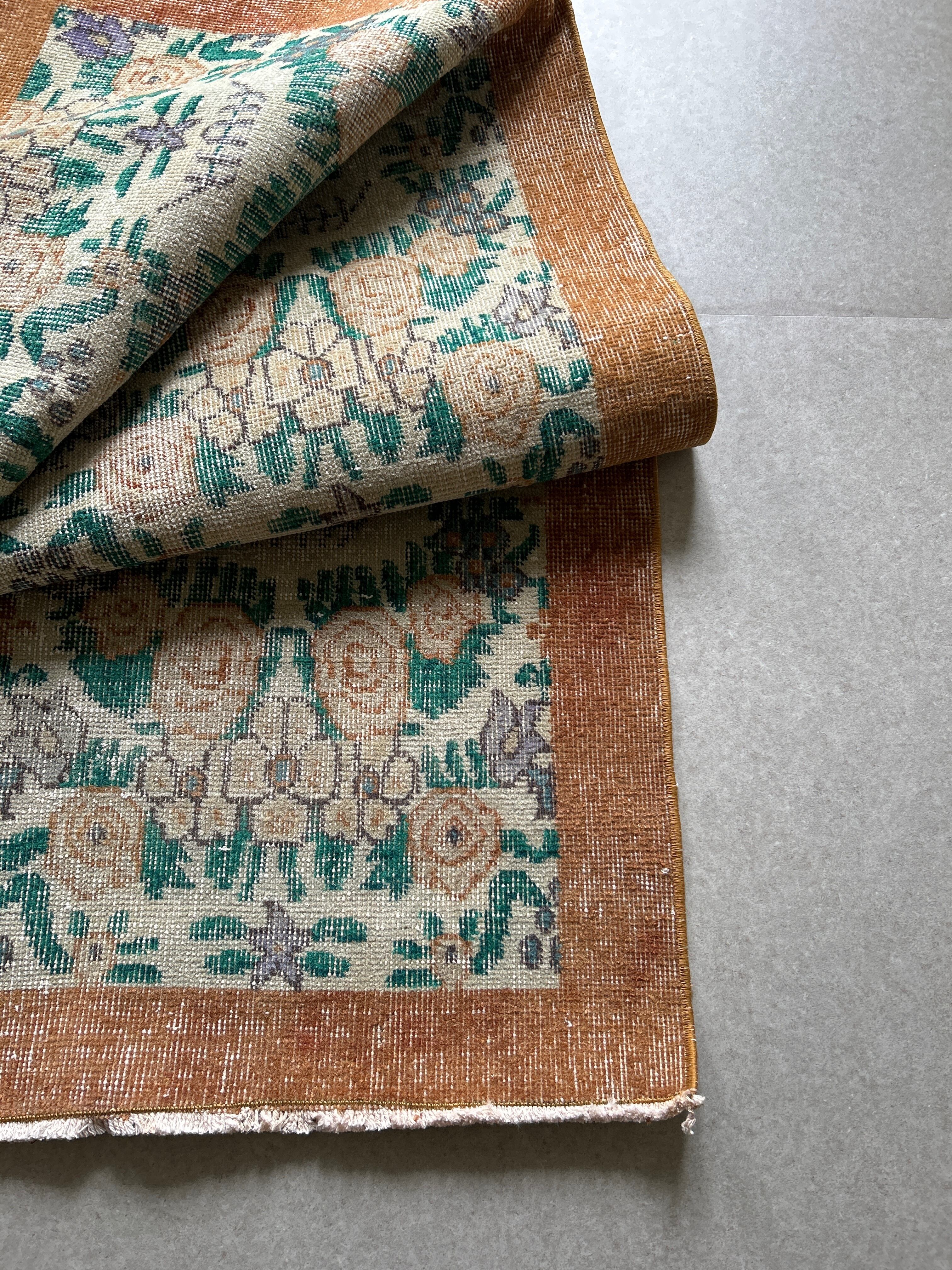 Vintage rug brown flower 200×110/ヴィンテージラグ トルコラグ