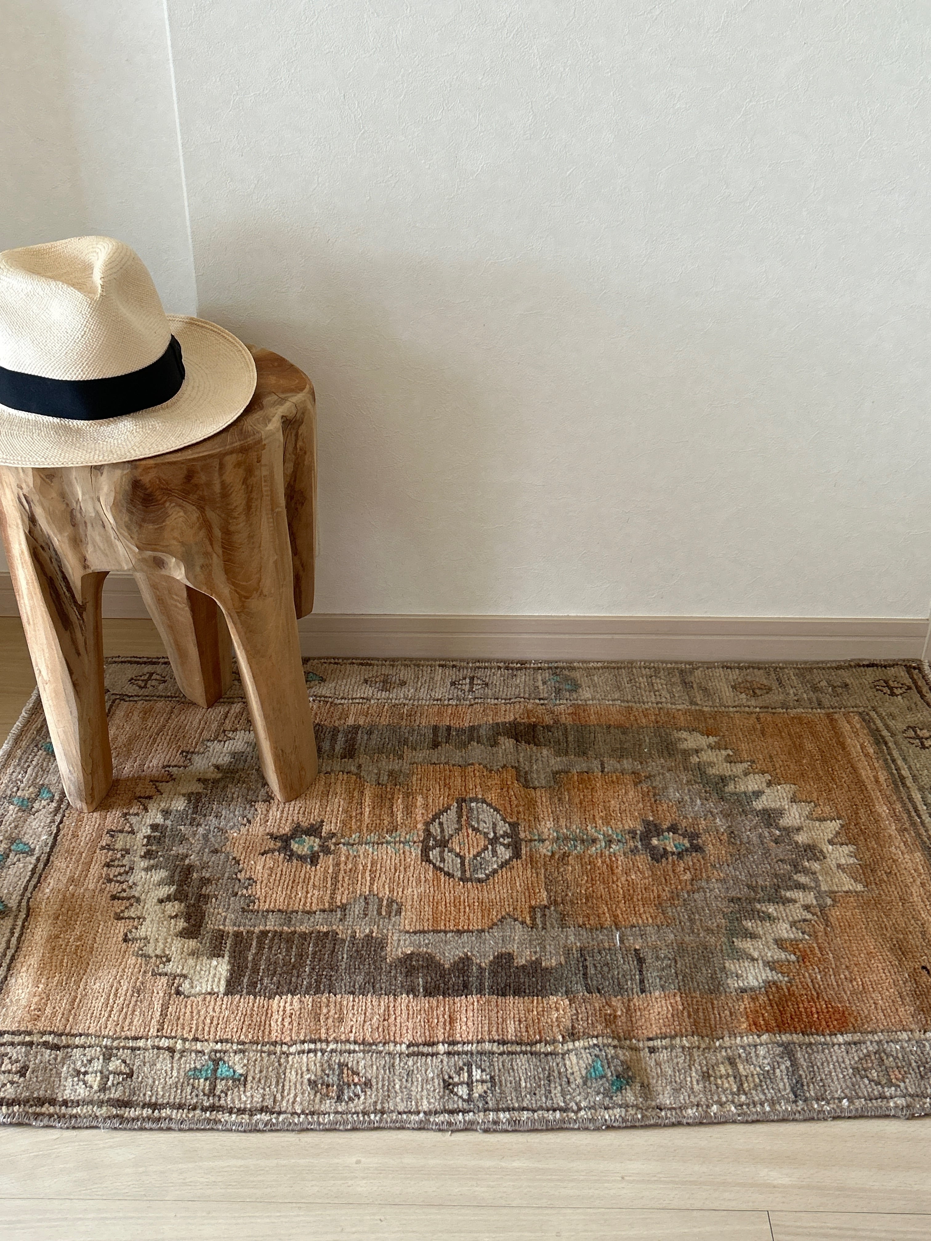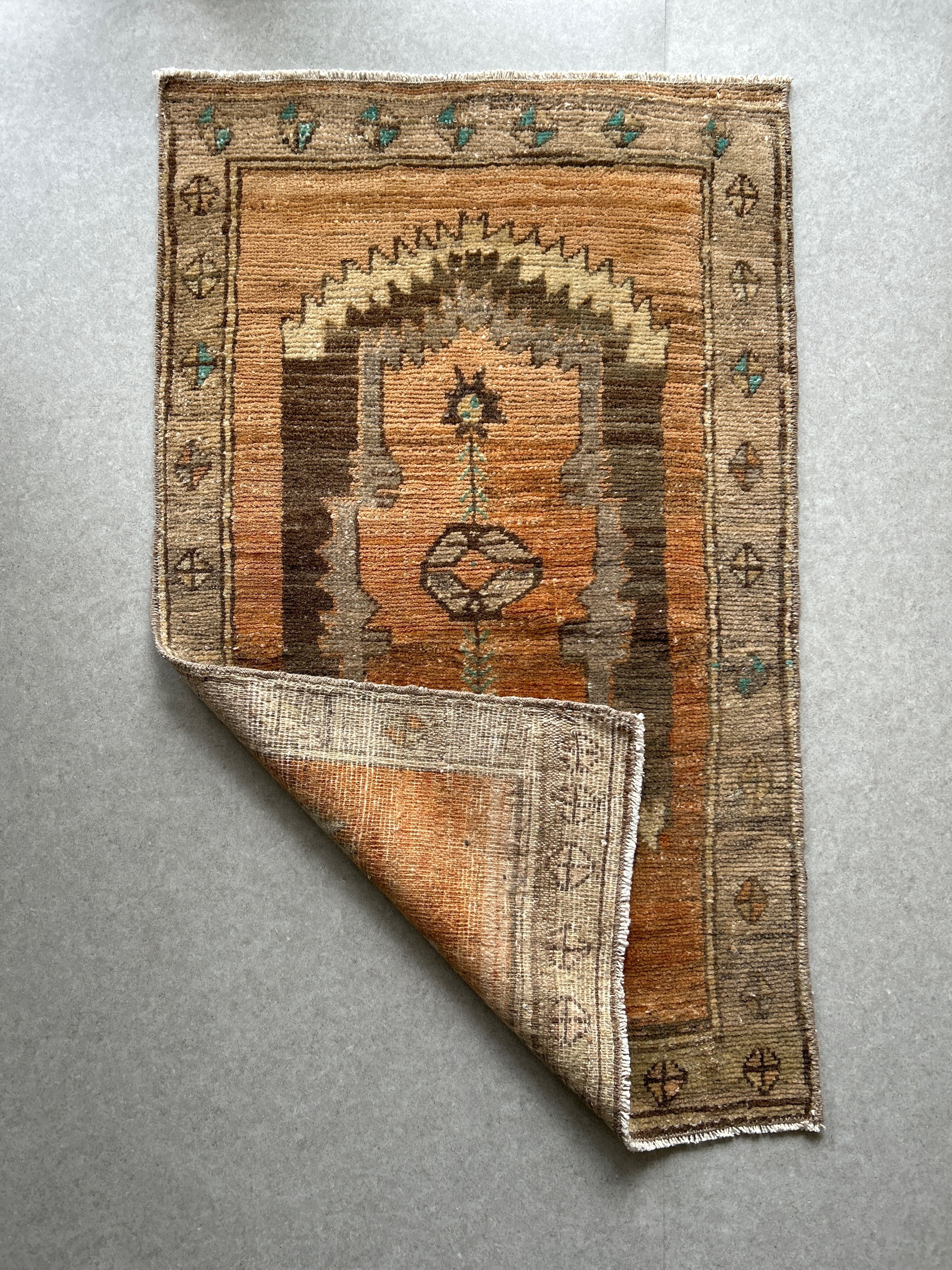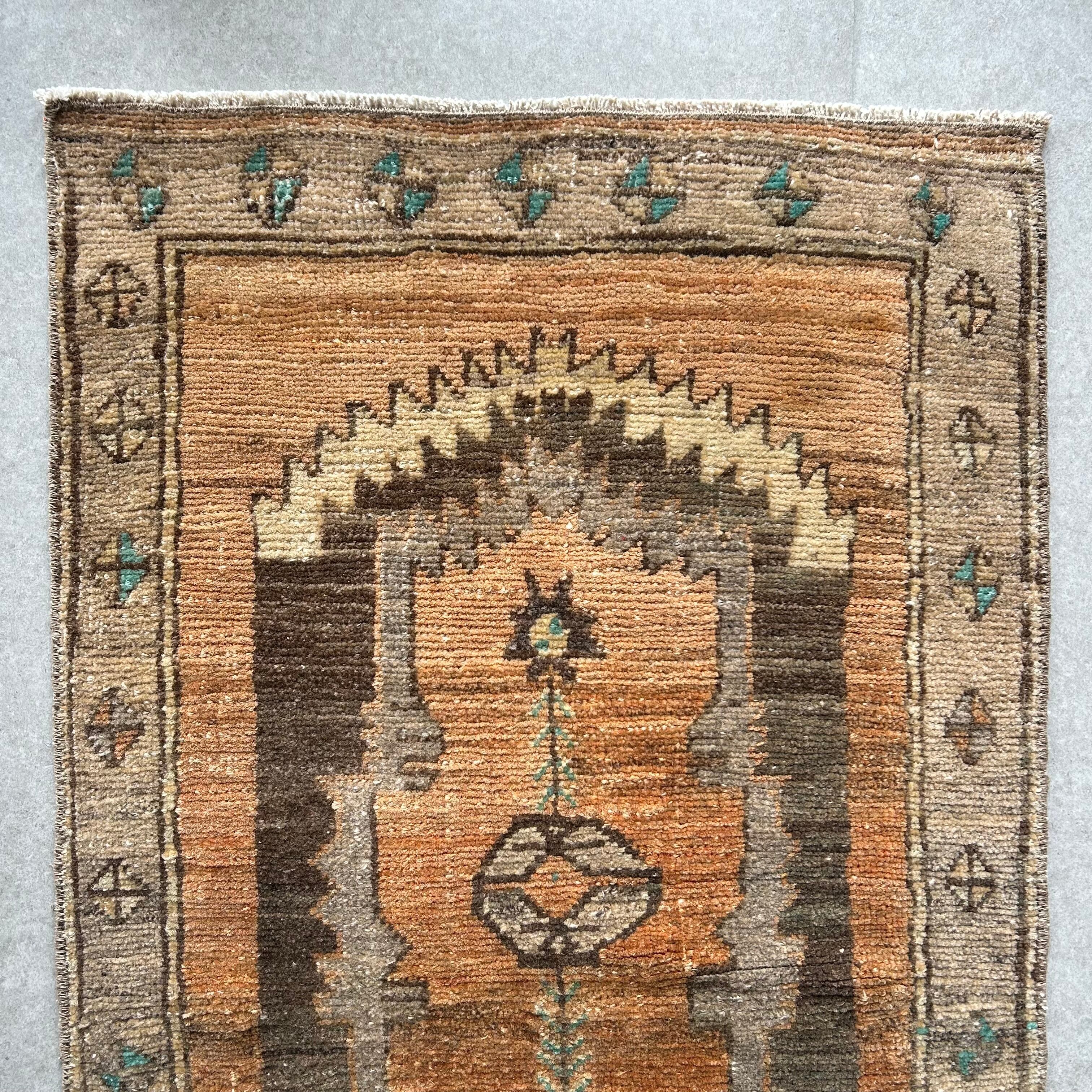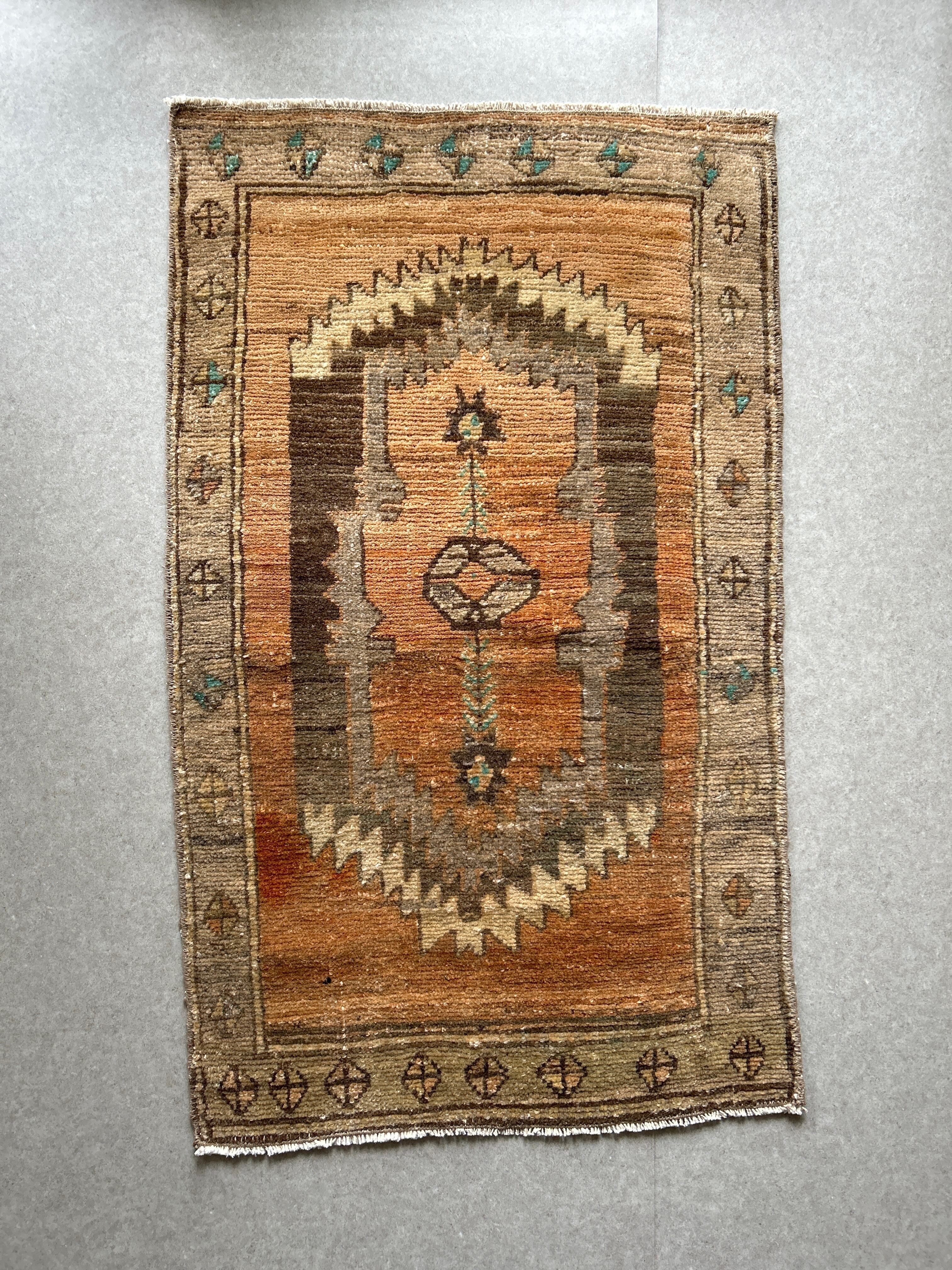 Vintage rug orange brown 105×63/ヴィンテージラグ トルコラグ 19250401