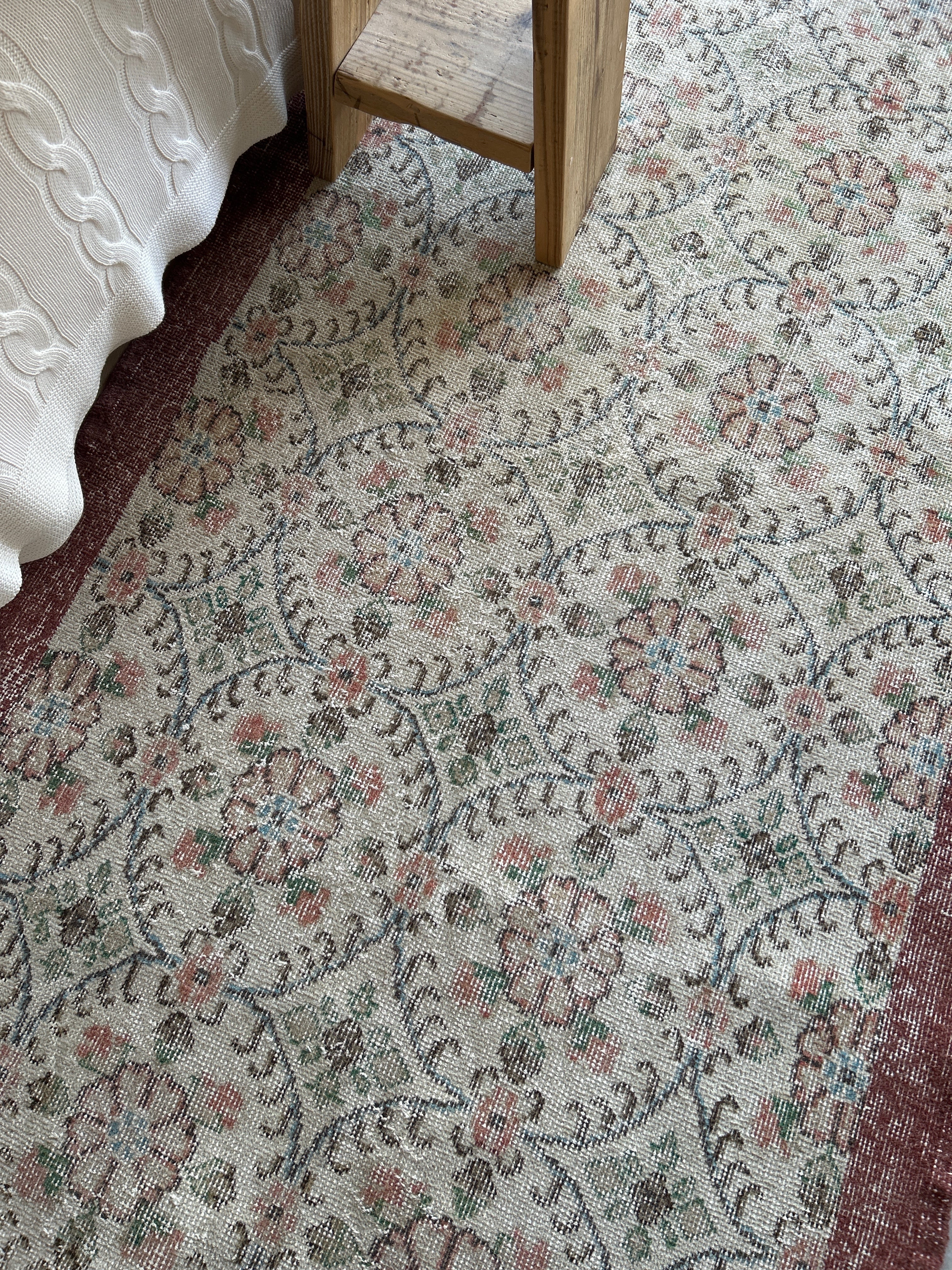 全体的にかすれがありますが、長年大事に使われてきた証として、ヴィンテージらしい味わいを楽しんでいただきたいラグです。