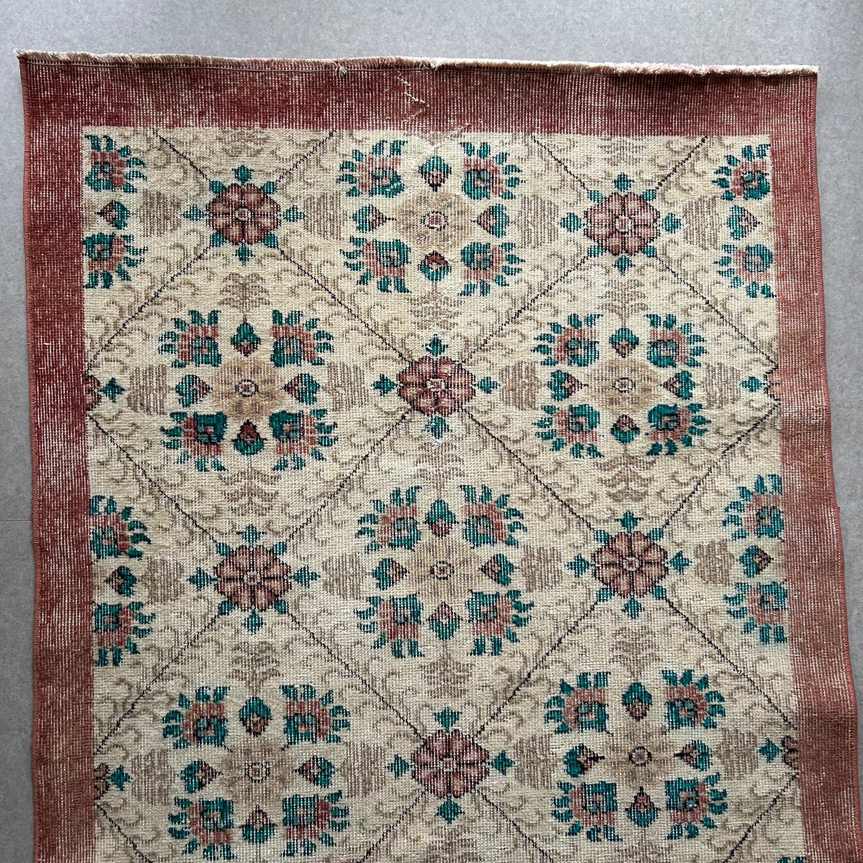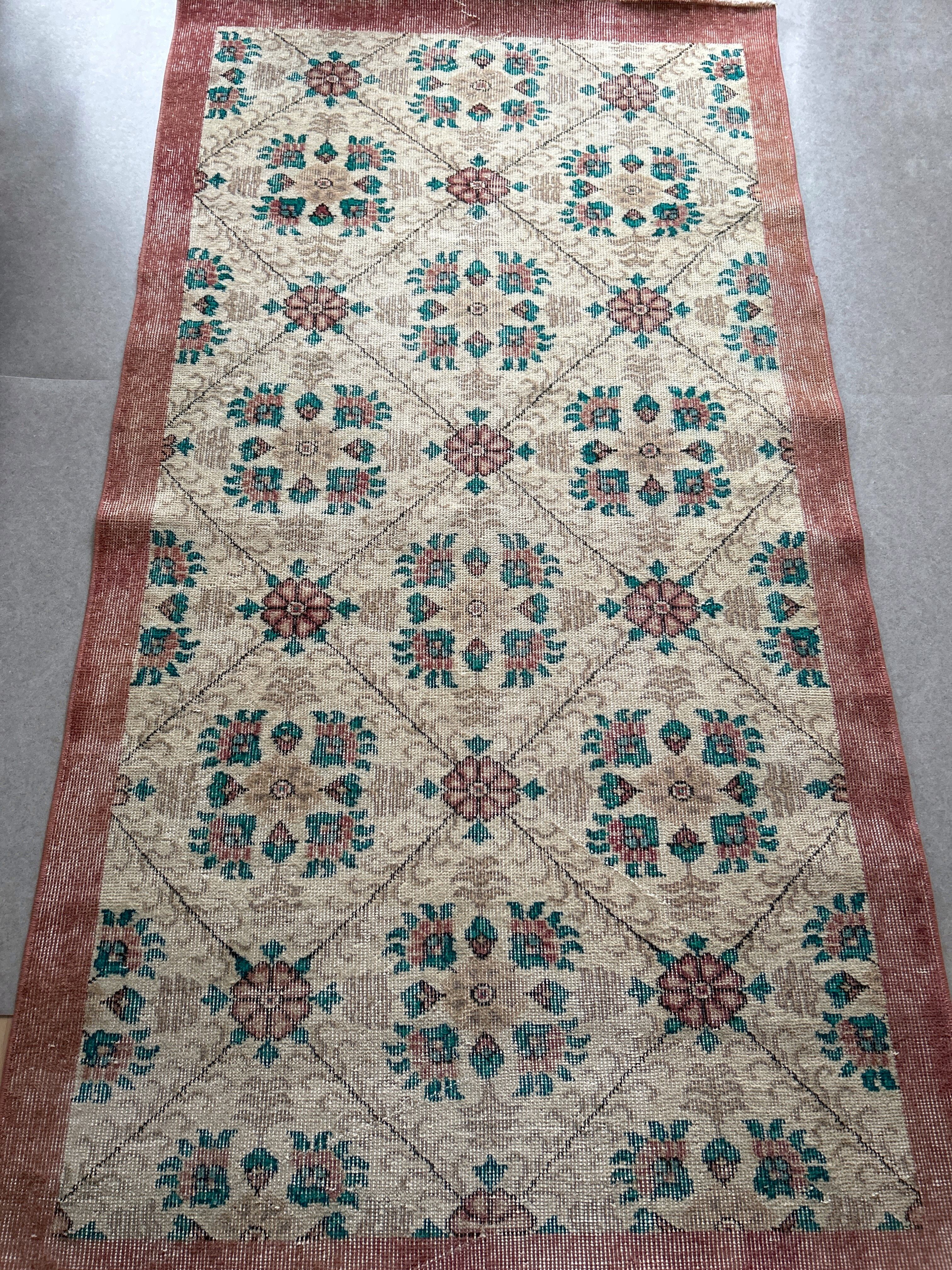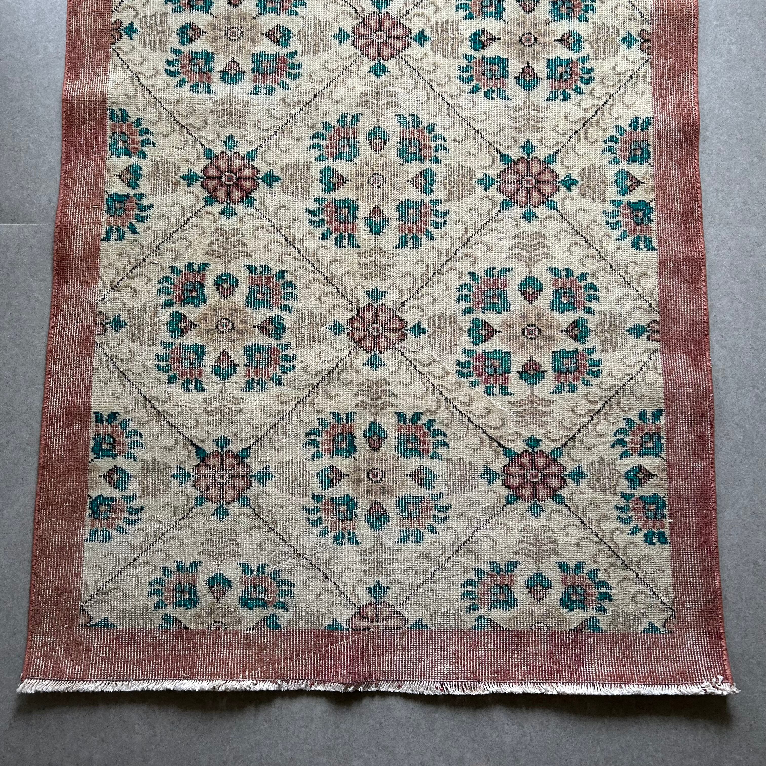 Vintage rug grid floral 209×115/ヴィンテージラグ トルコラグ 30250506