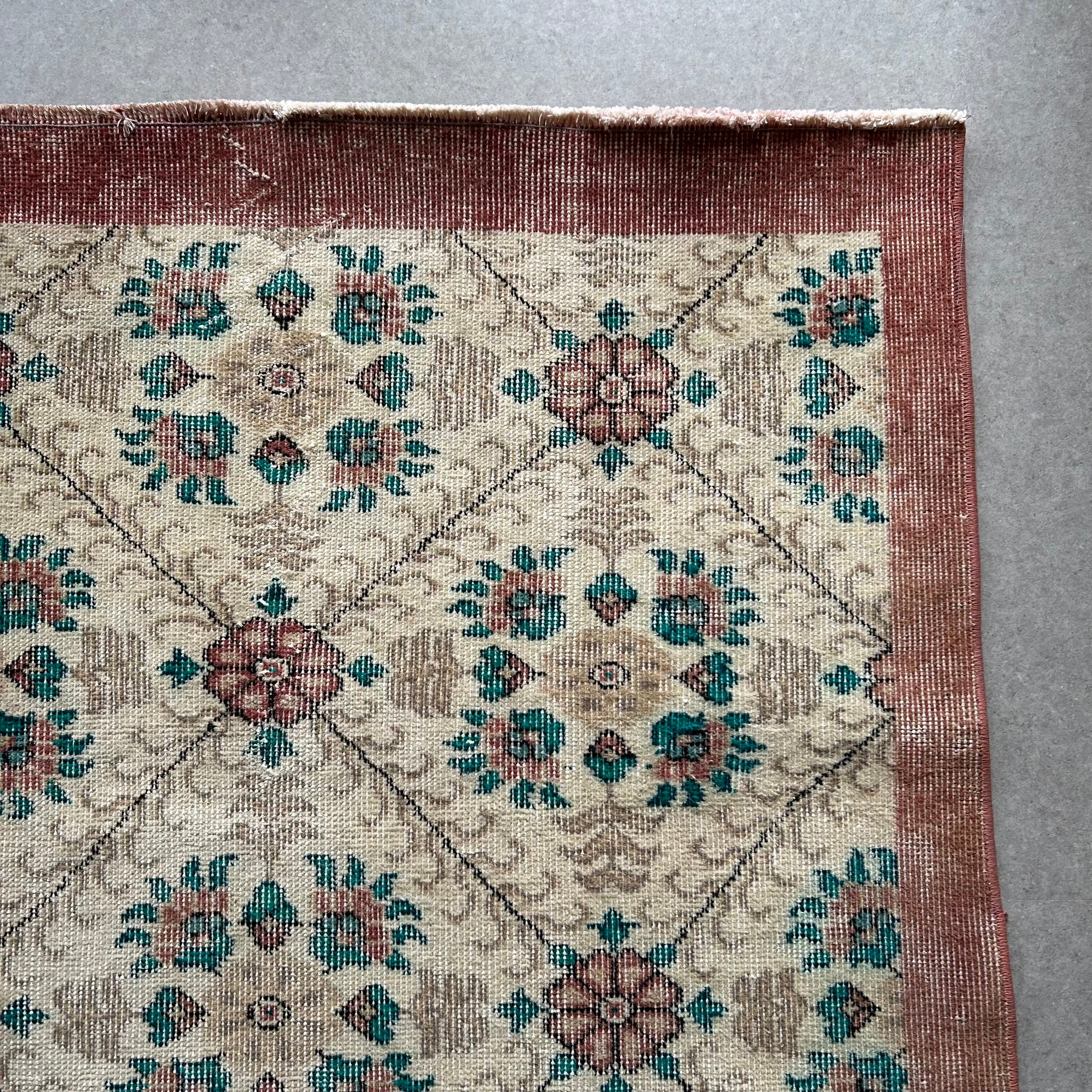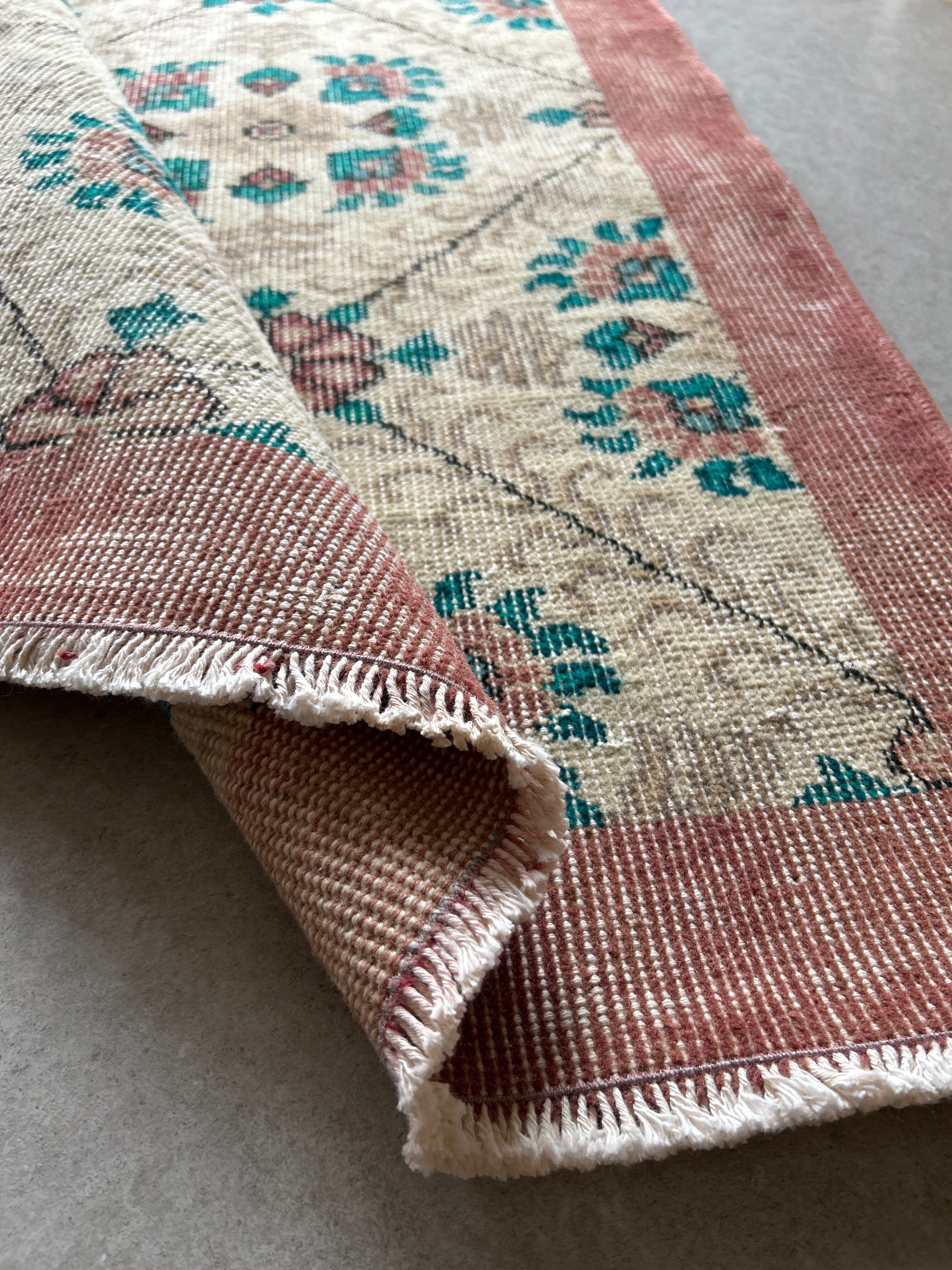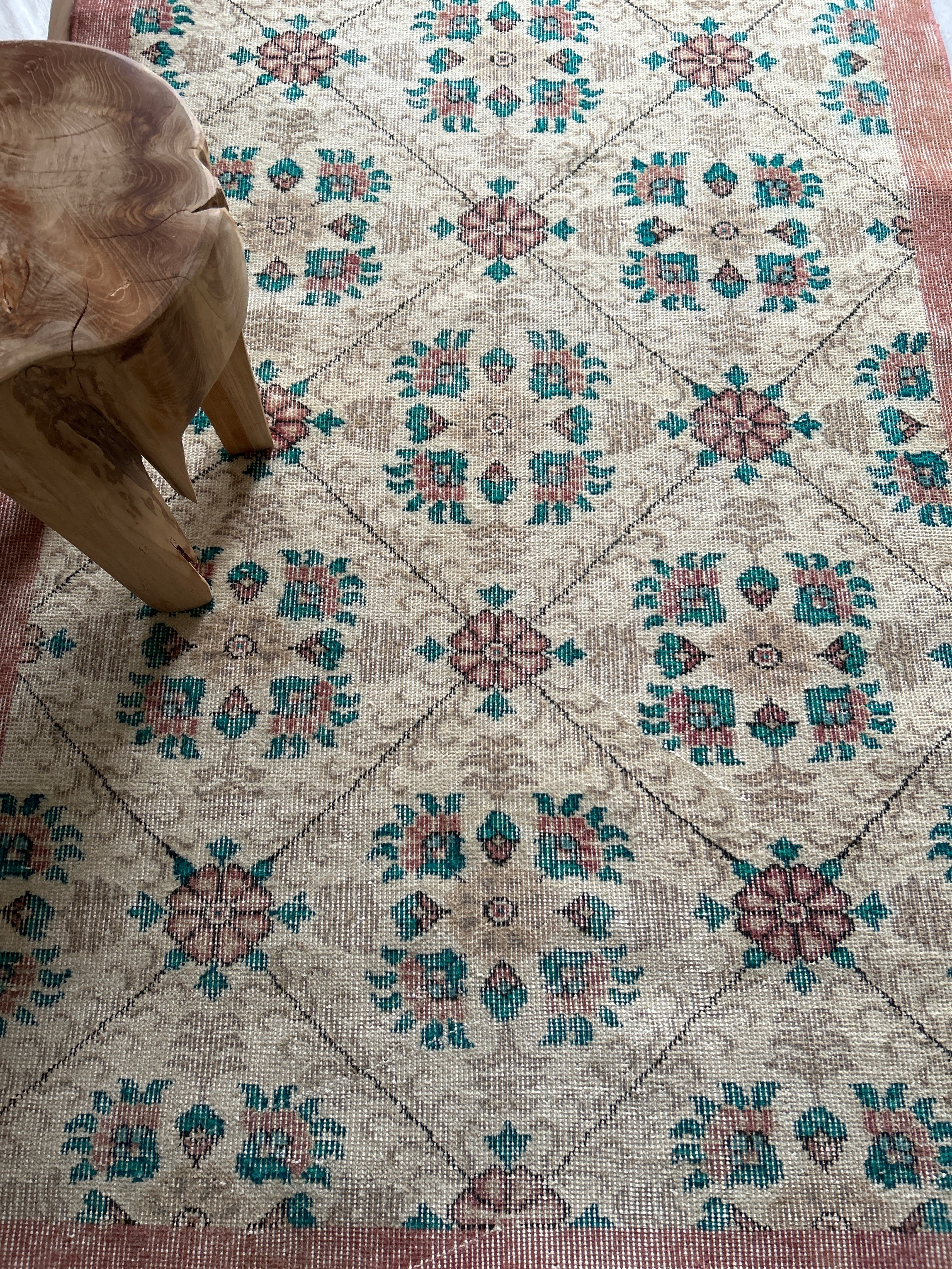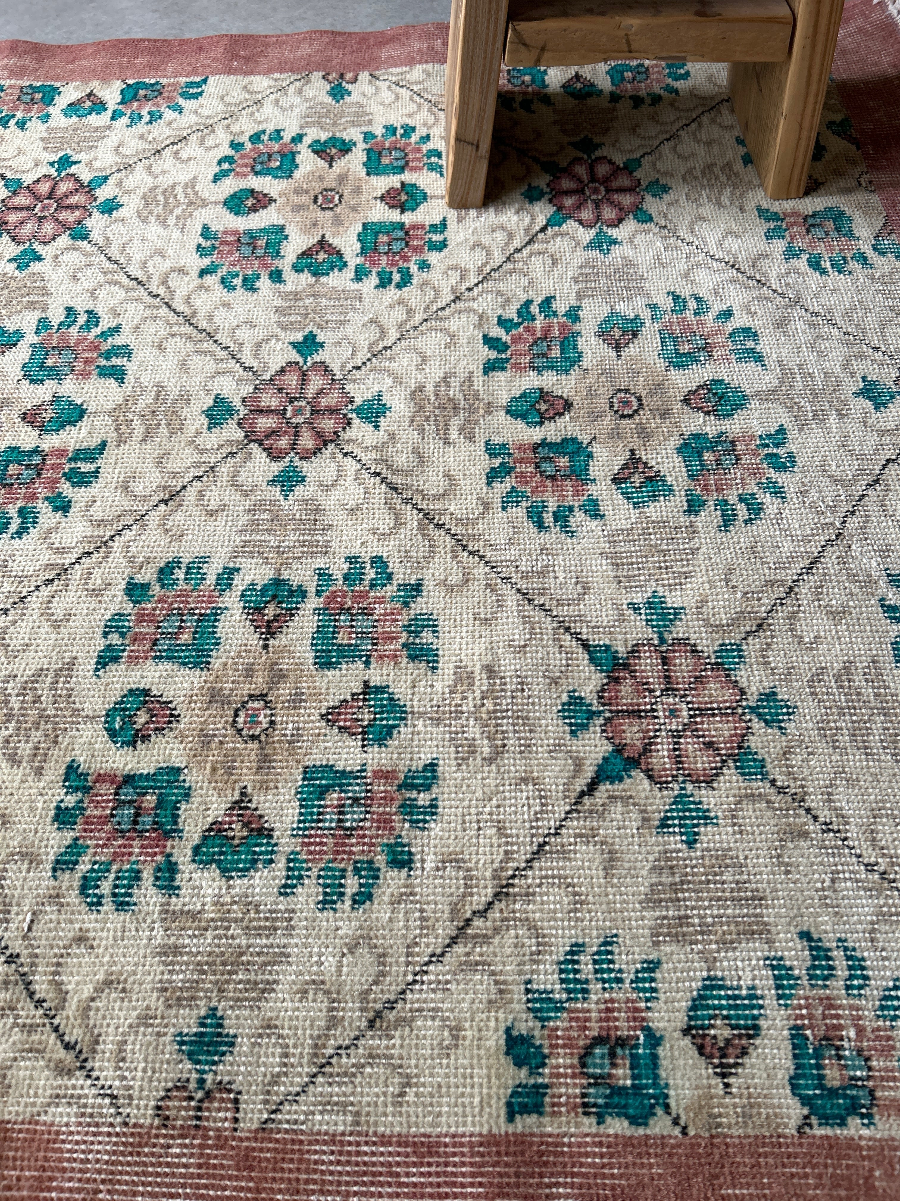 Vintage rug grid floral 209×115/ヴィンテージラグ トルコラグ 30250506