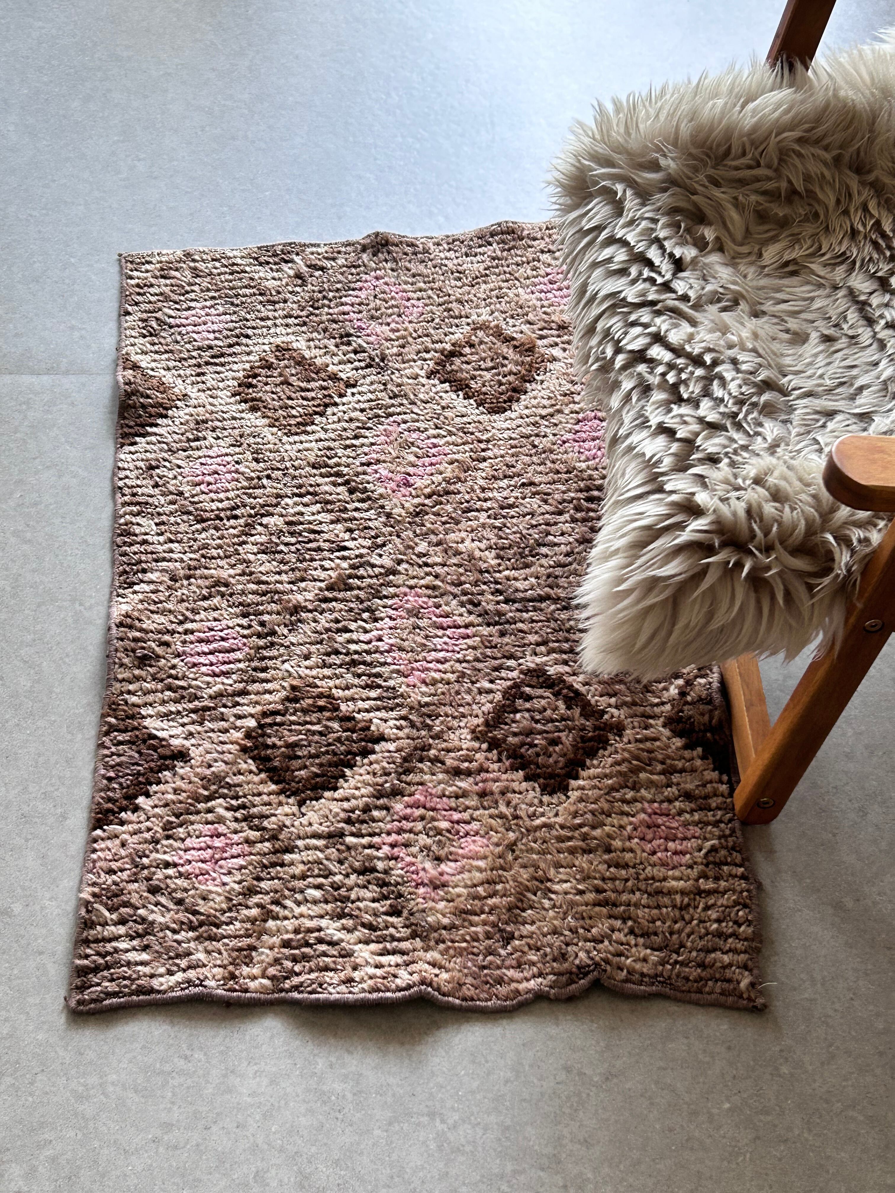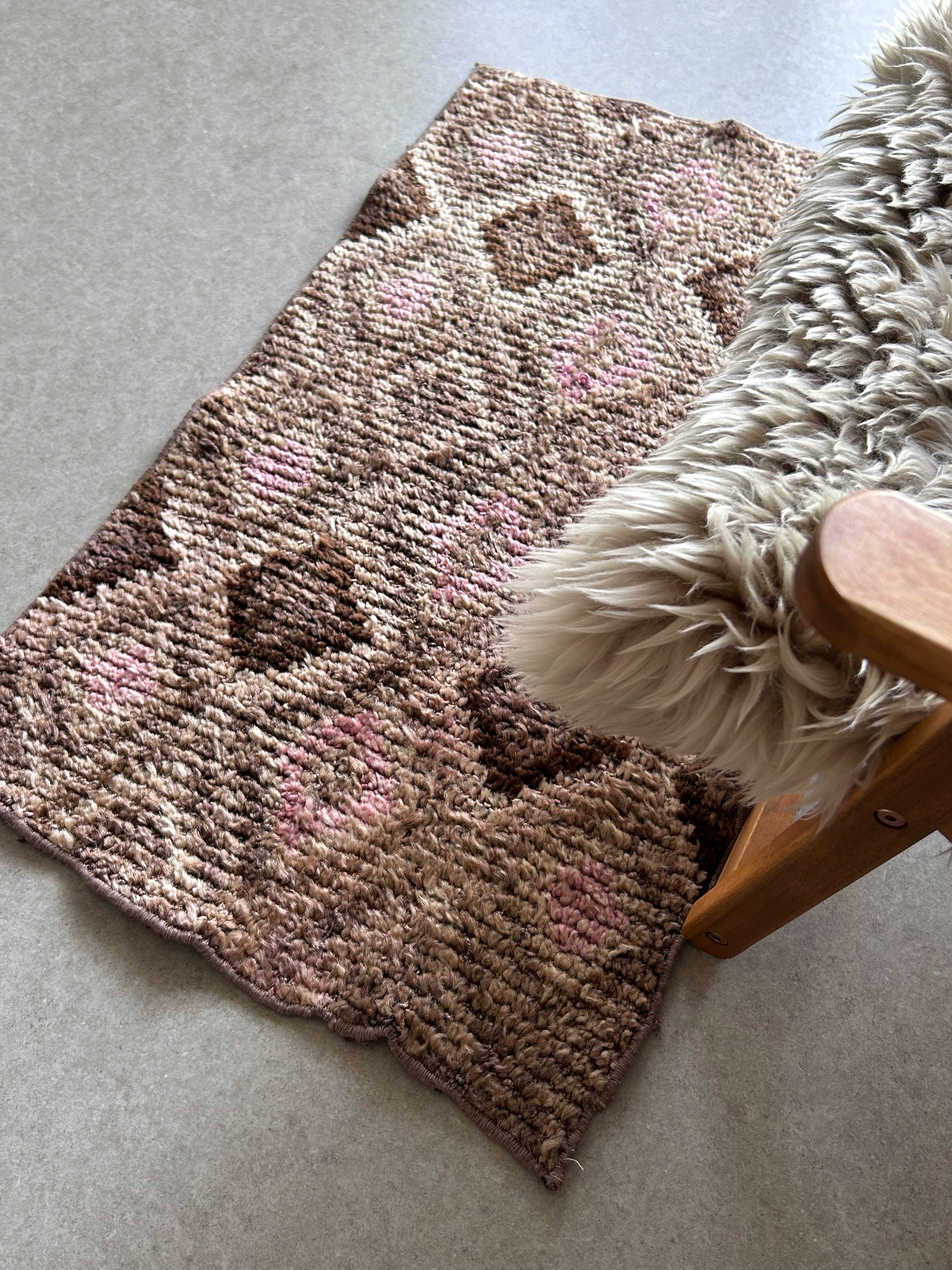 Vintage rug pink diamond 88×51/ヴィンテージラグ トルコラグ 47250801