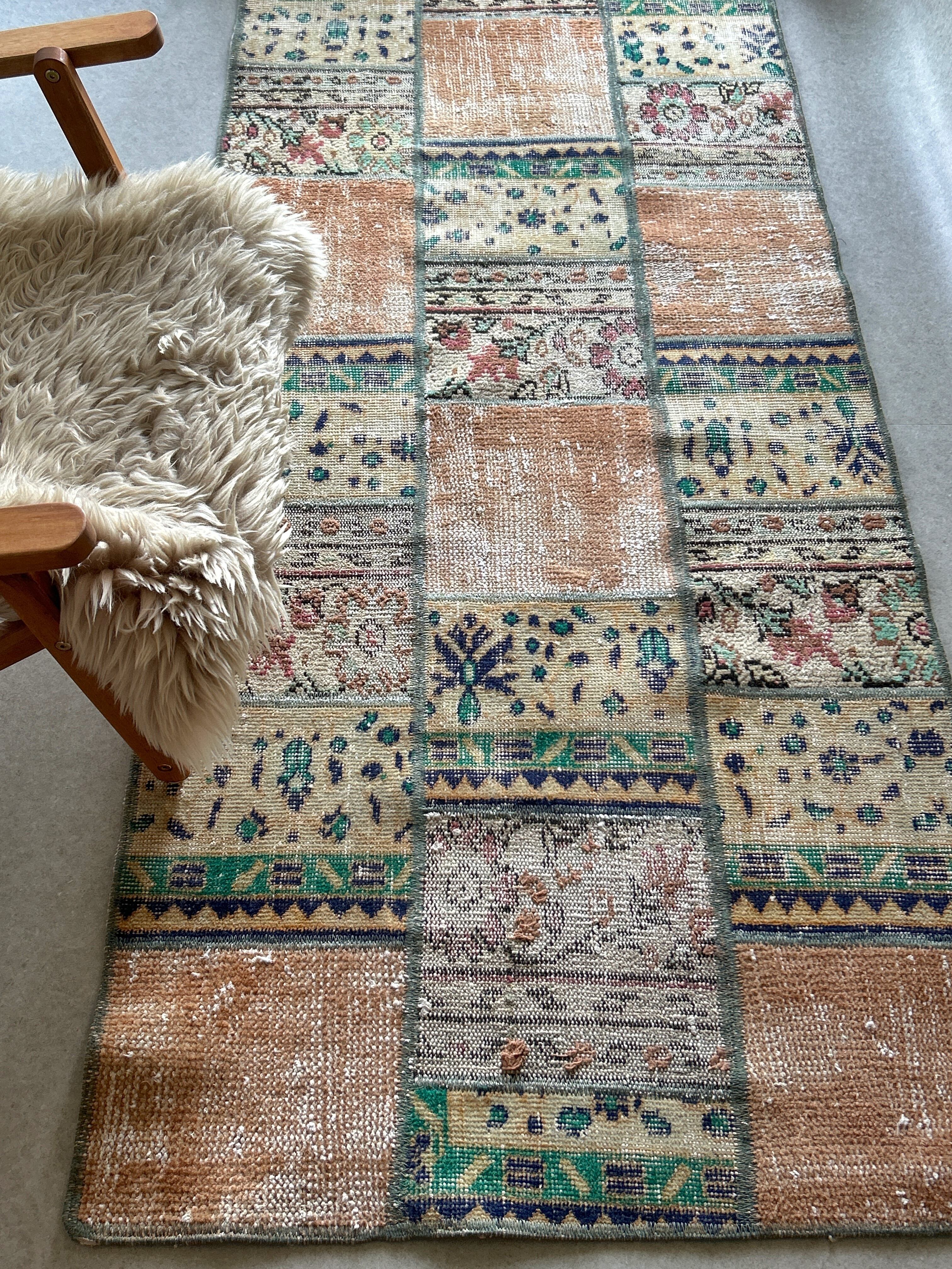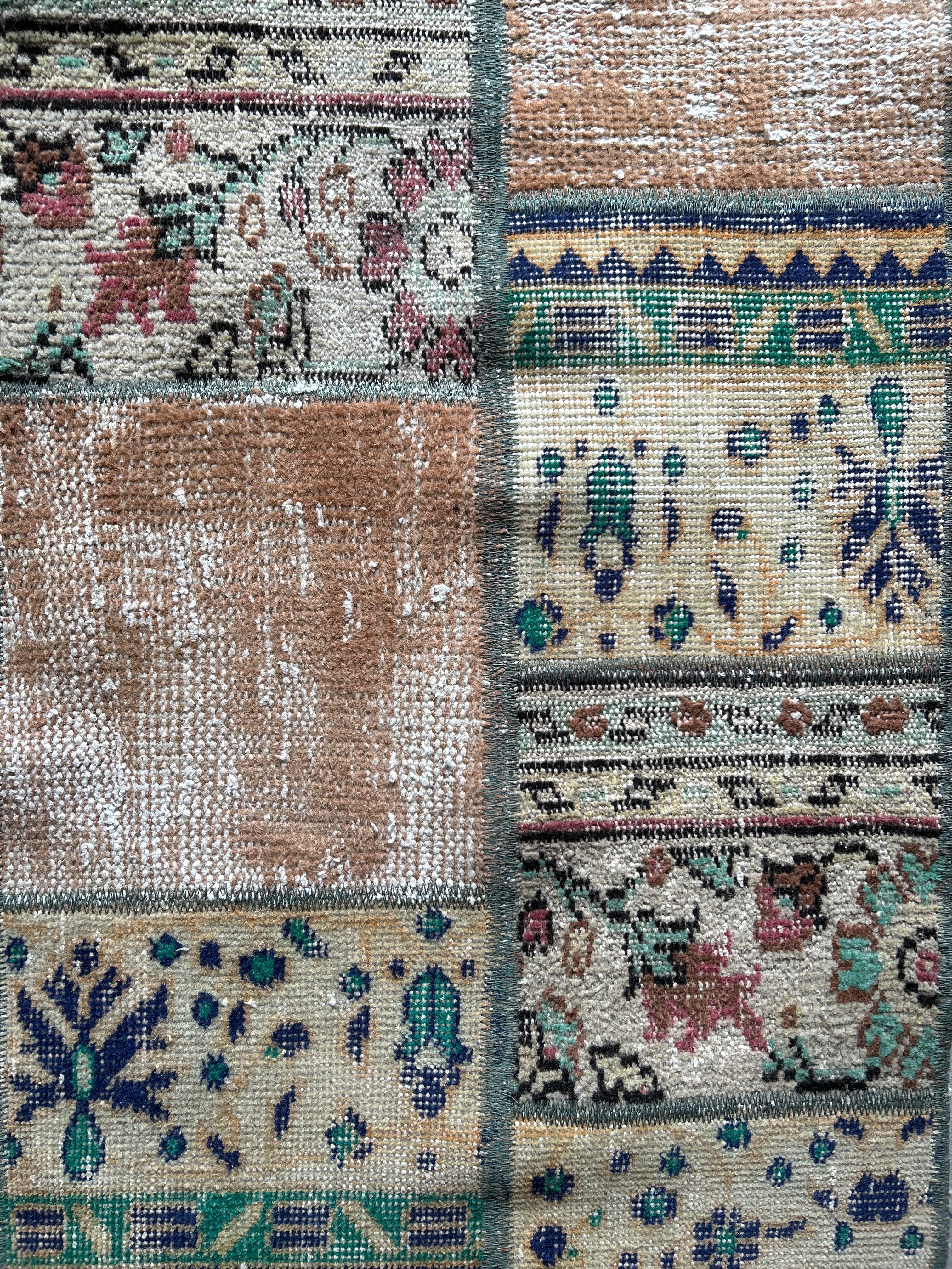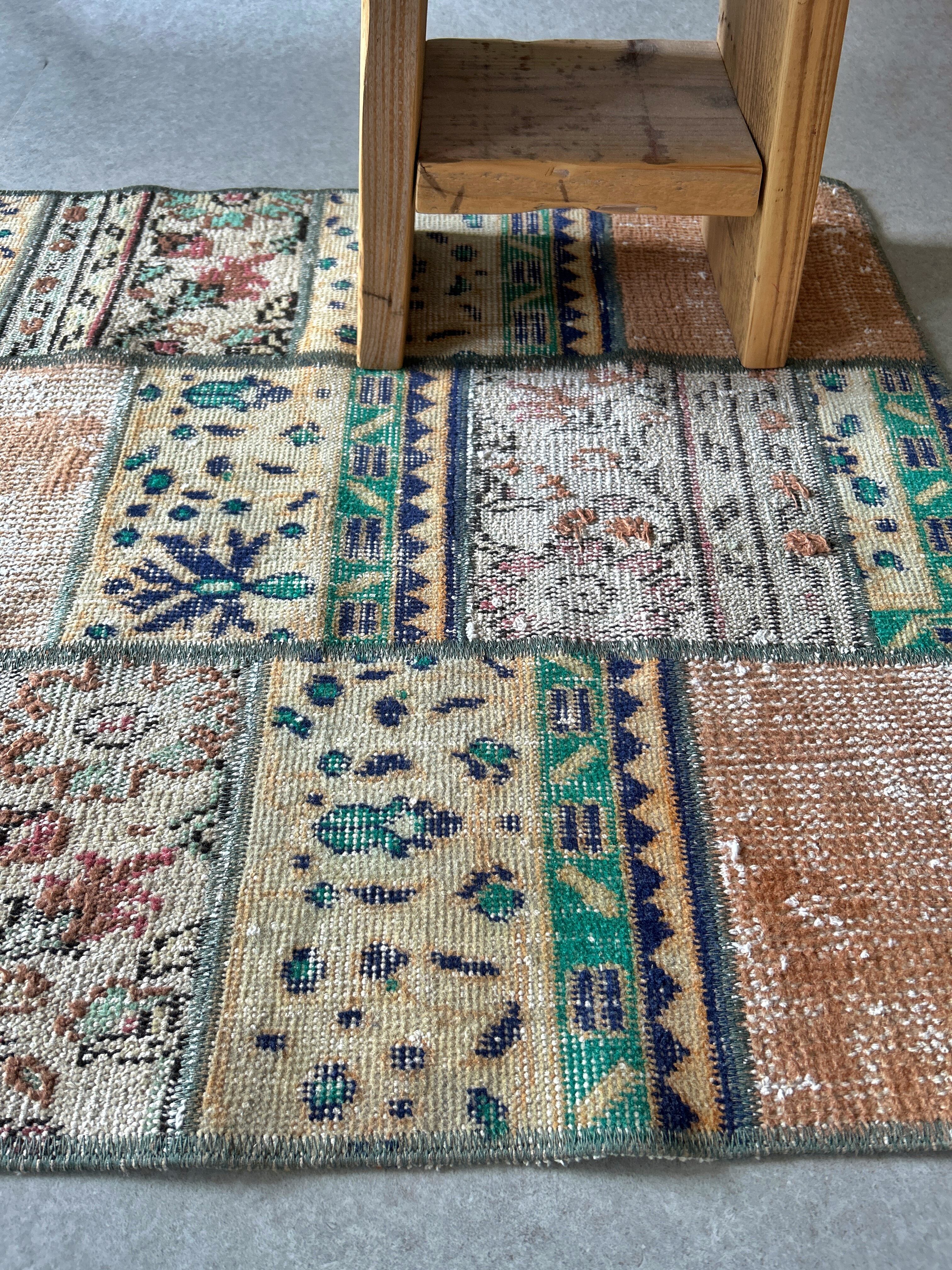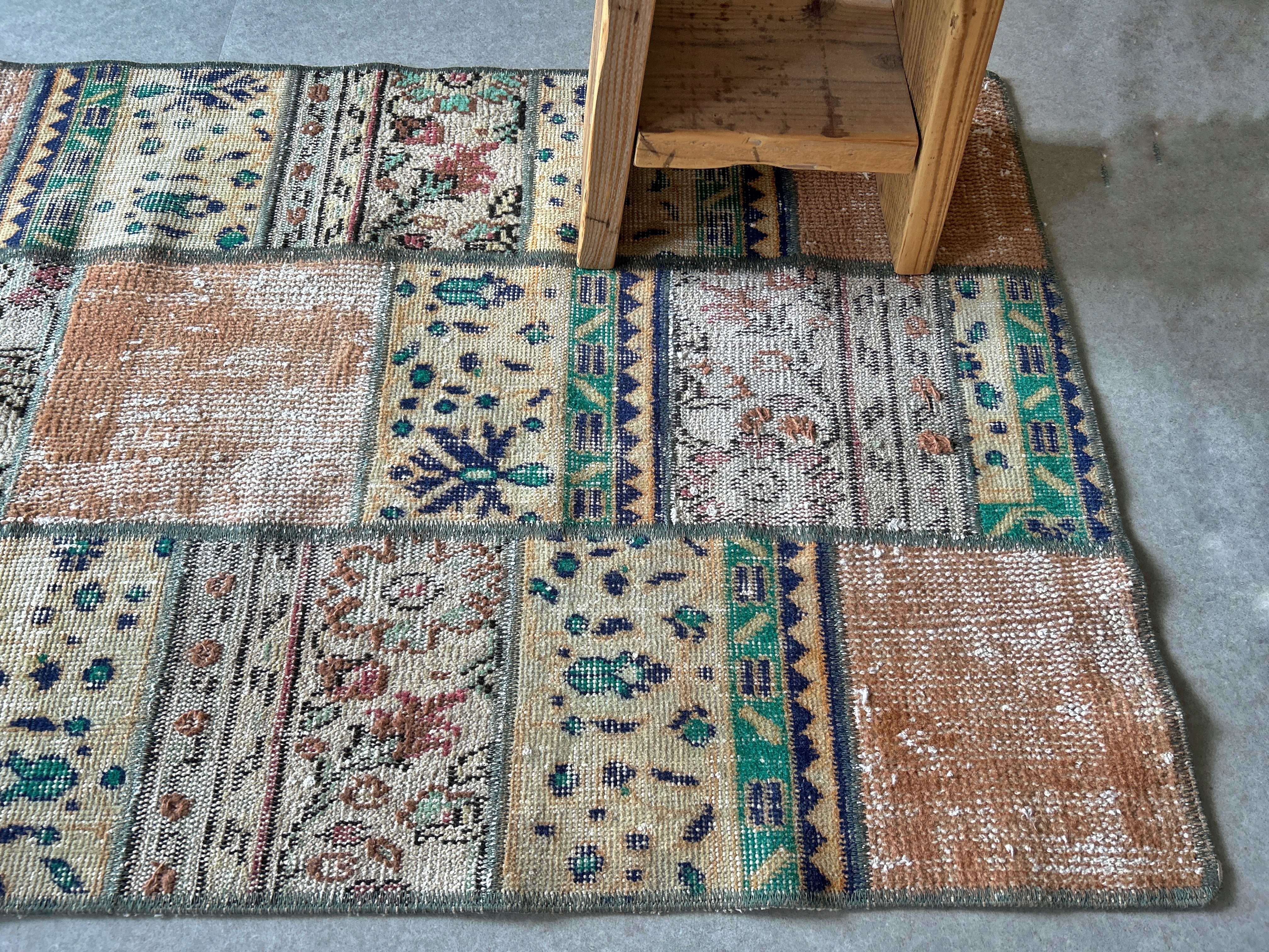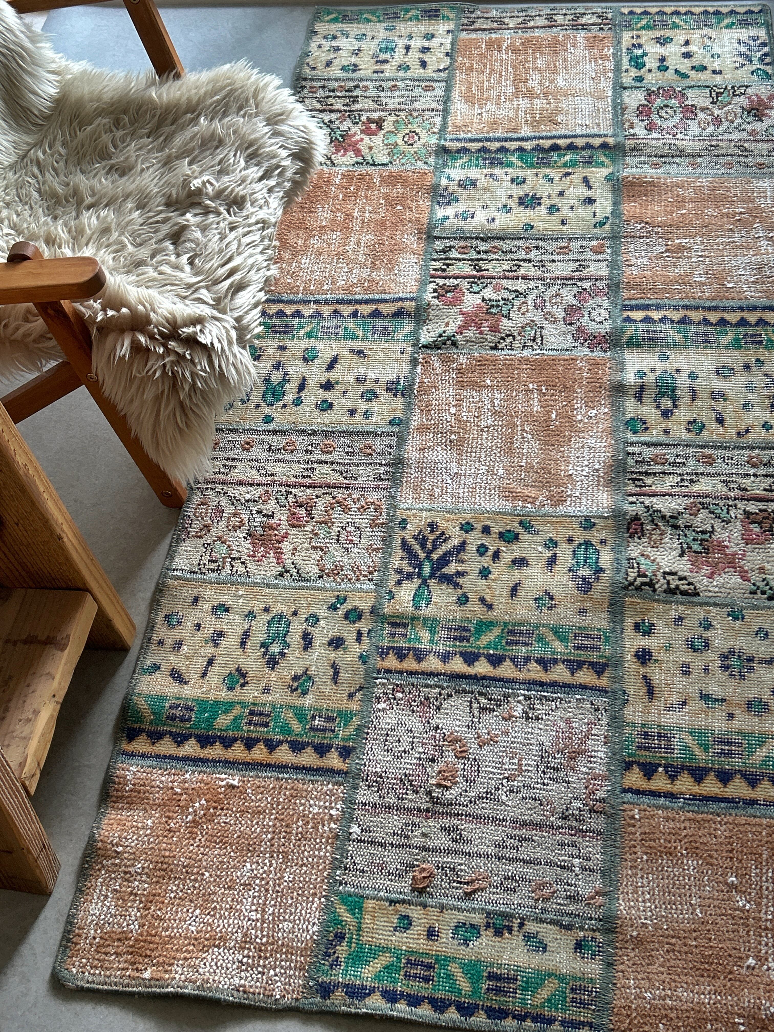 3種類のラグのピースから作られたパッチワークラグ。
