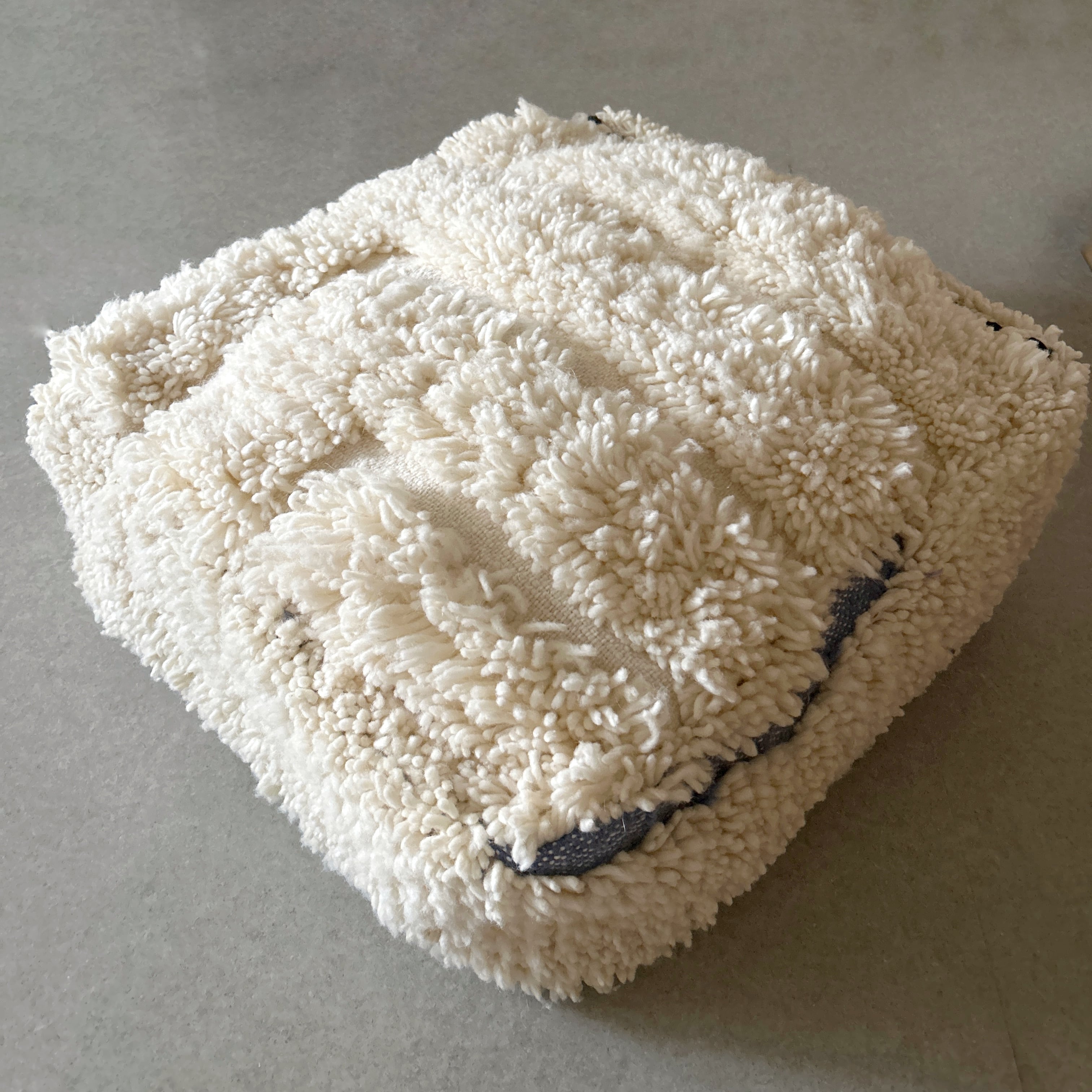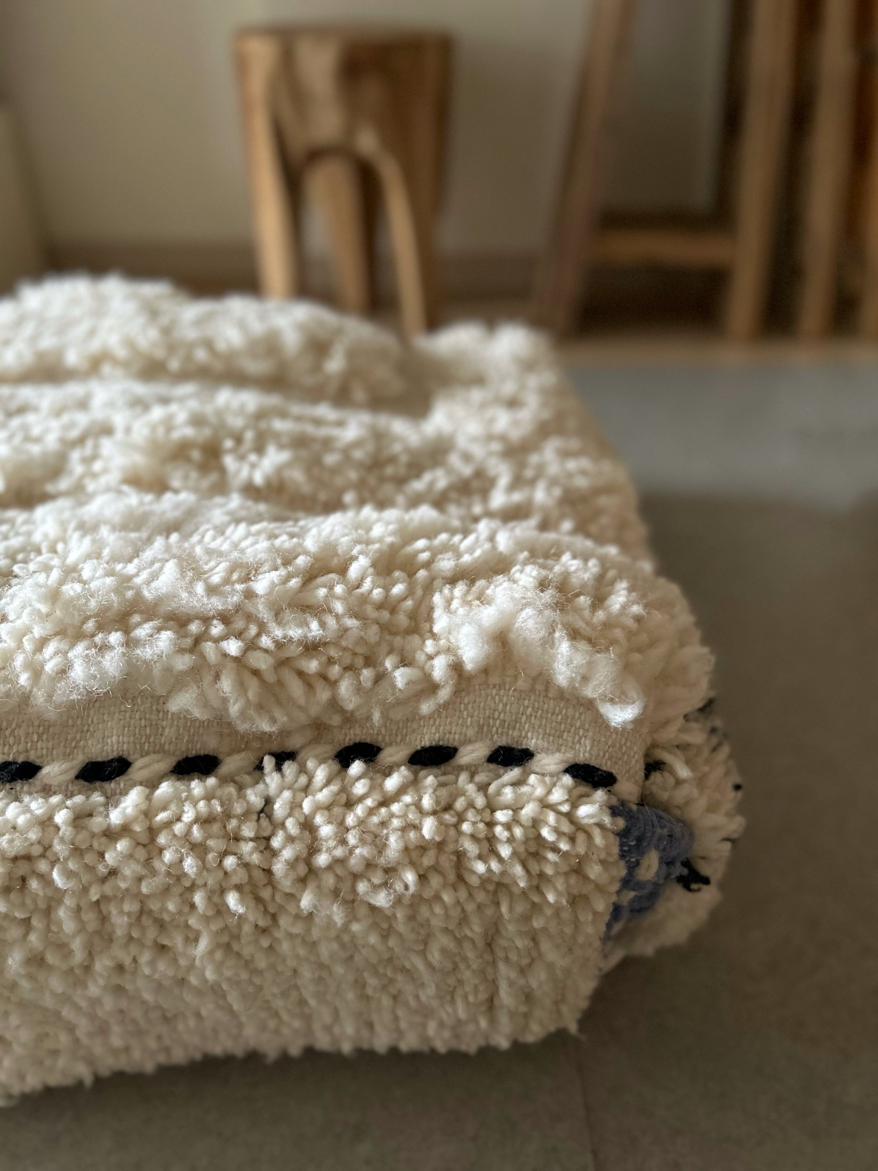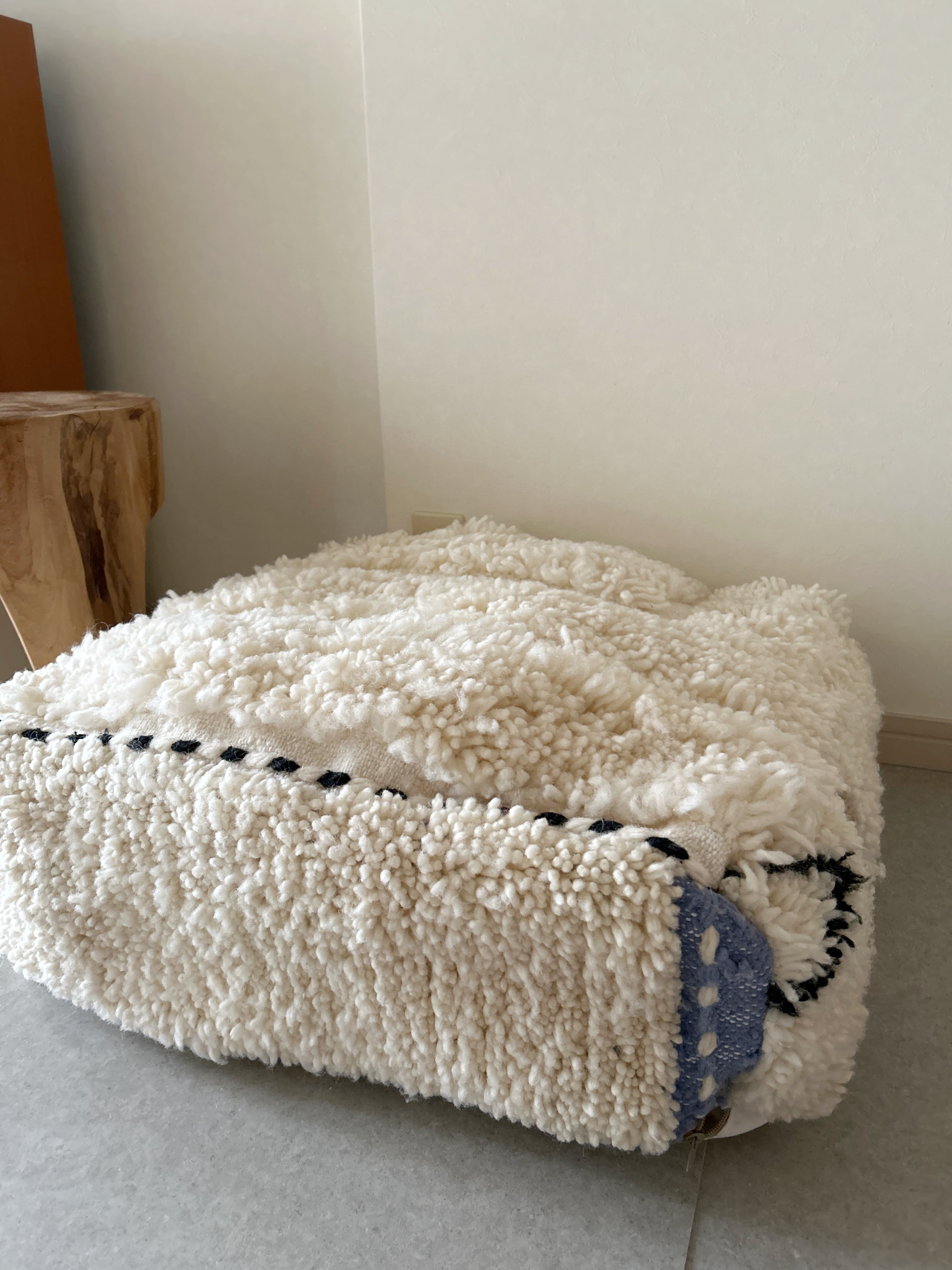 モロッコのラグから作られたプフです。フロアークッションとしてお使いいただけます。