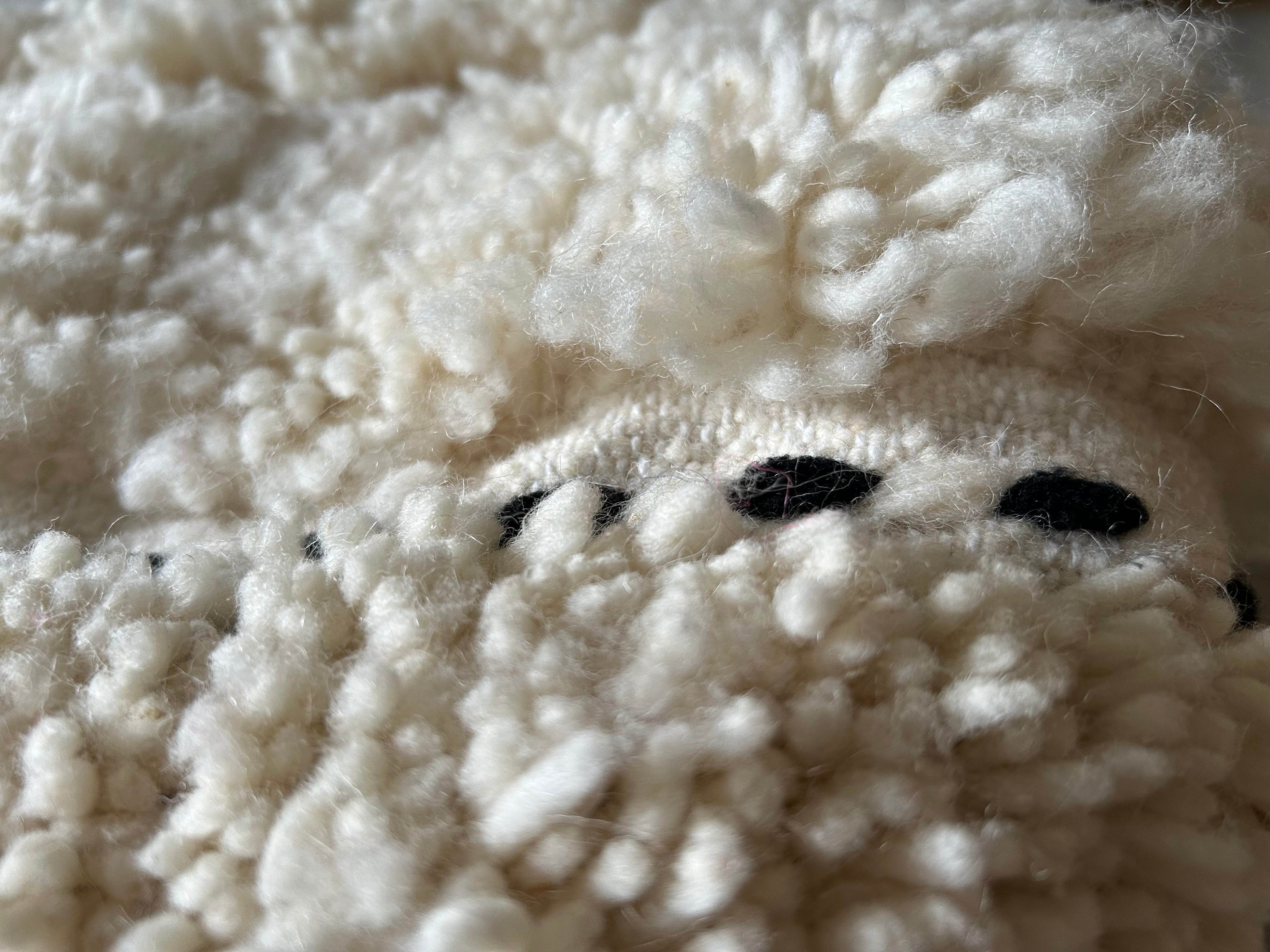 モコモコの長い毛足と毛足のないフラットな部分で模様になっています。