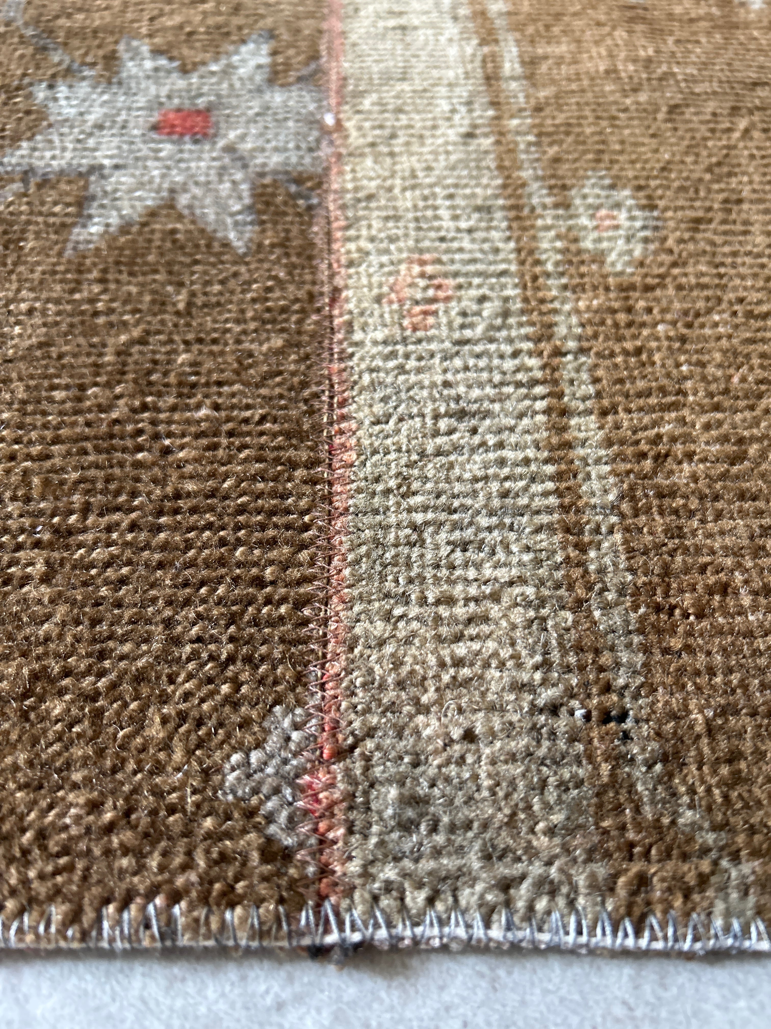 おそらく同じラグから切り出された3枚の細長いピースを繋ぎ合わされています。