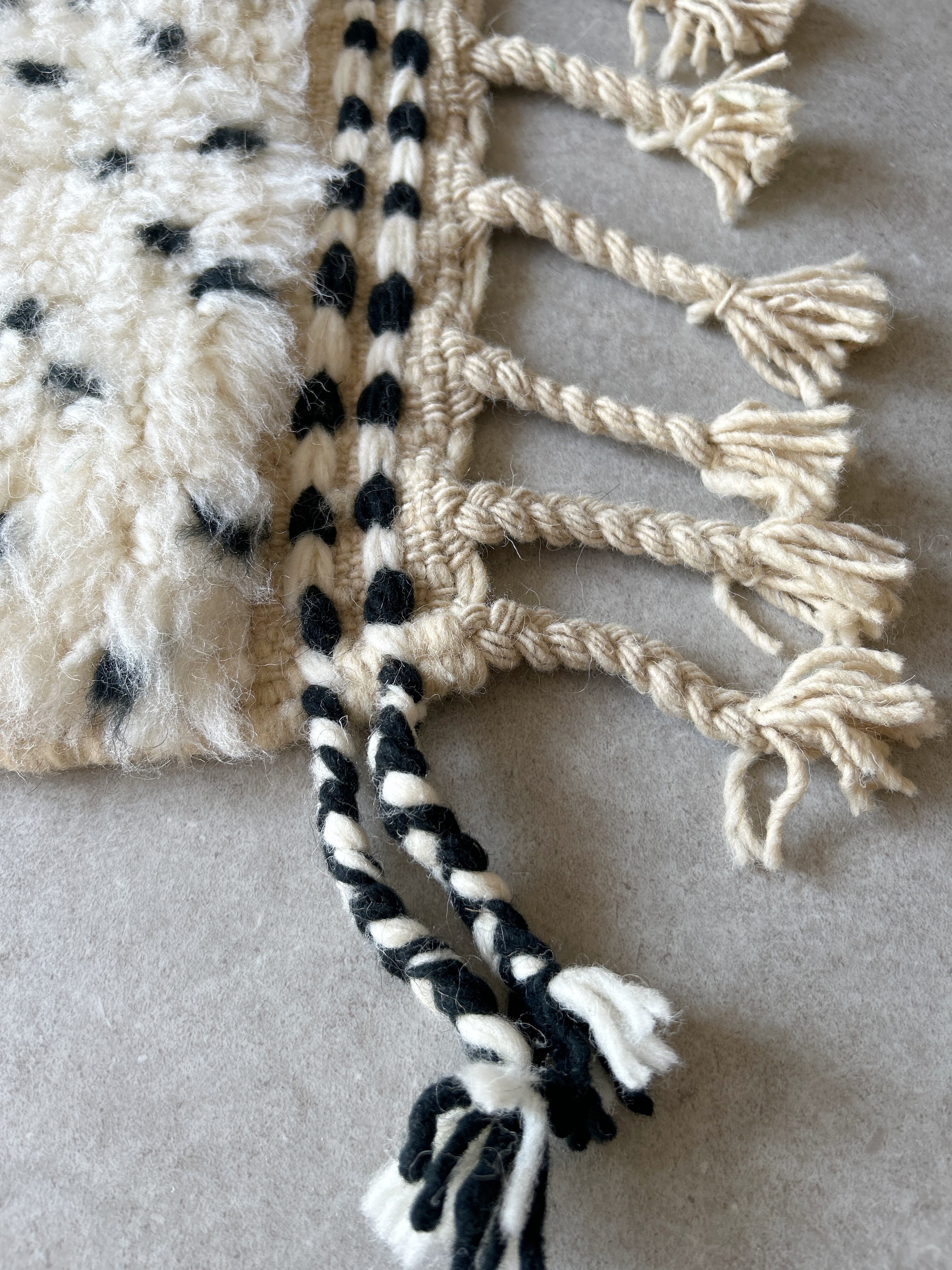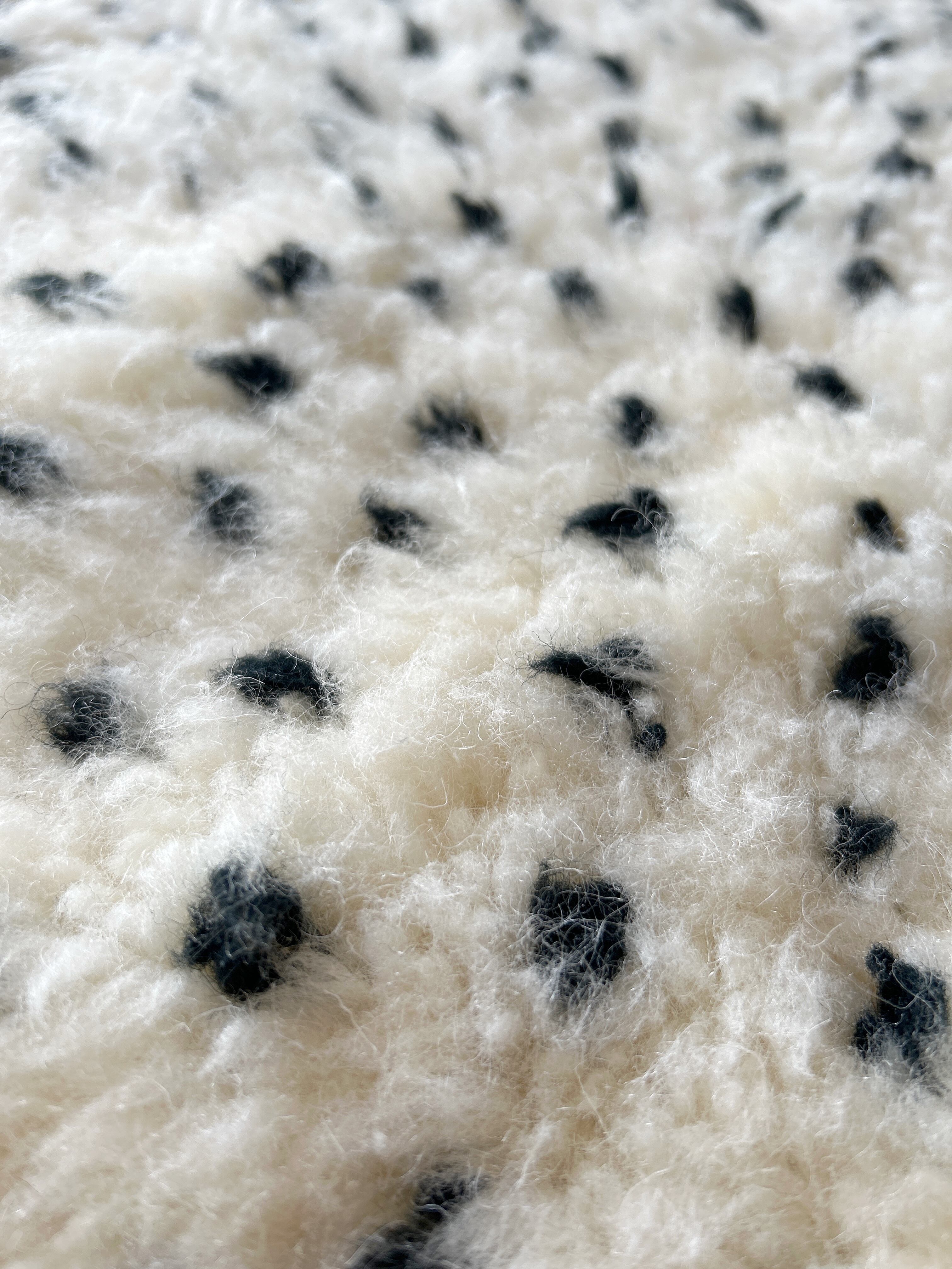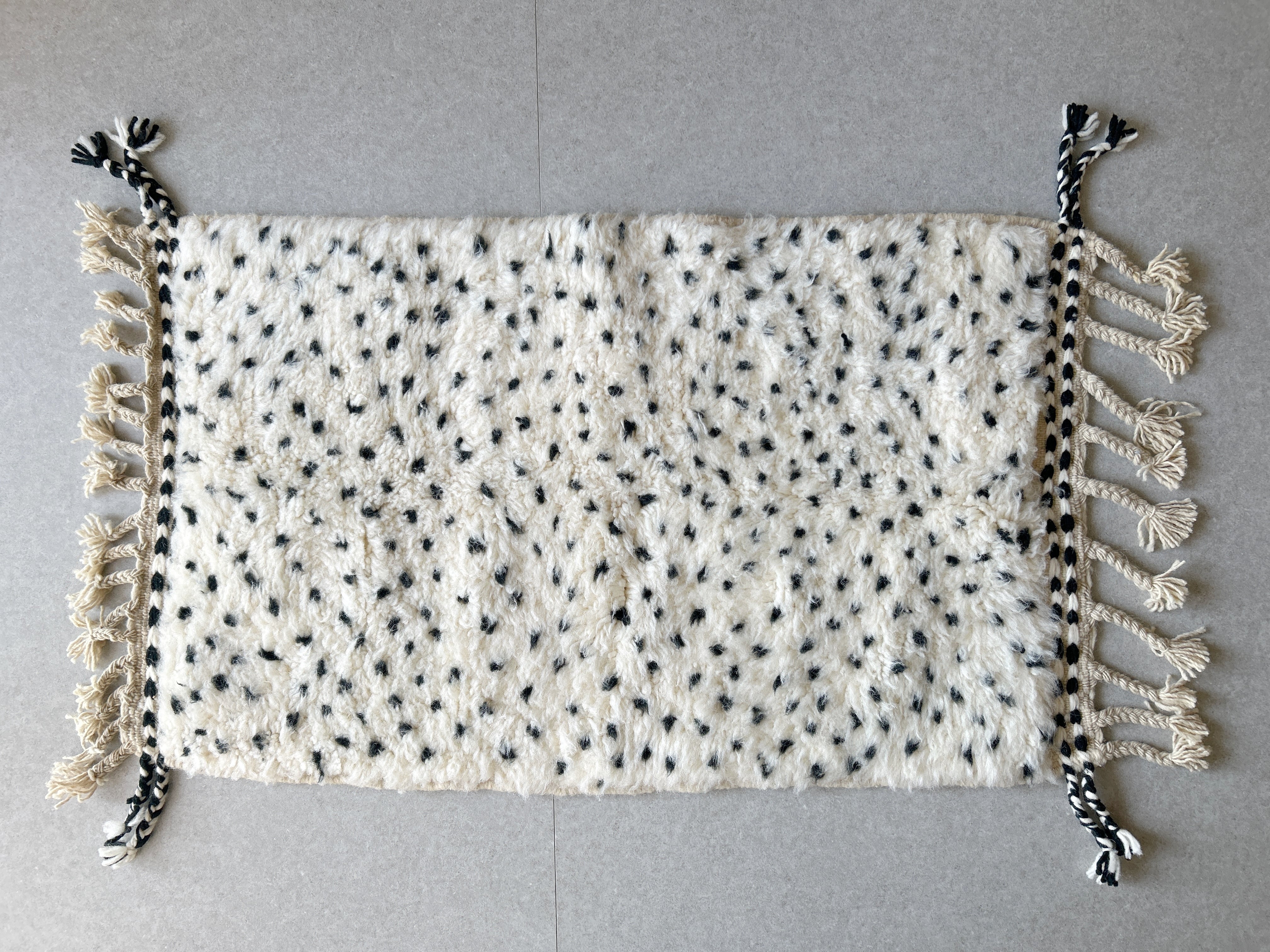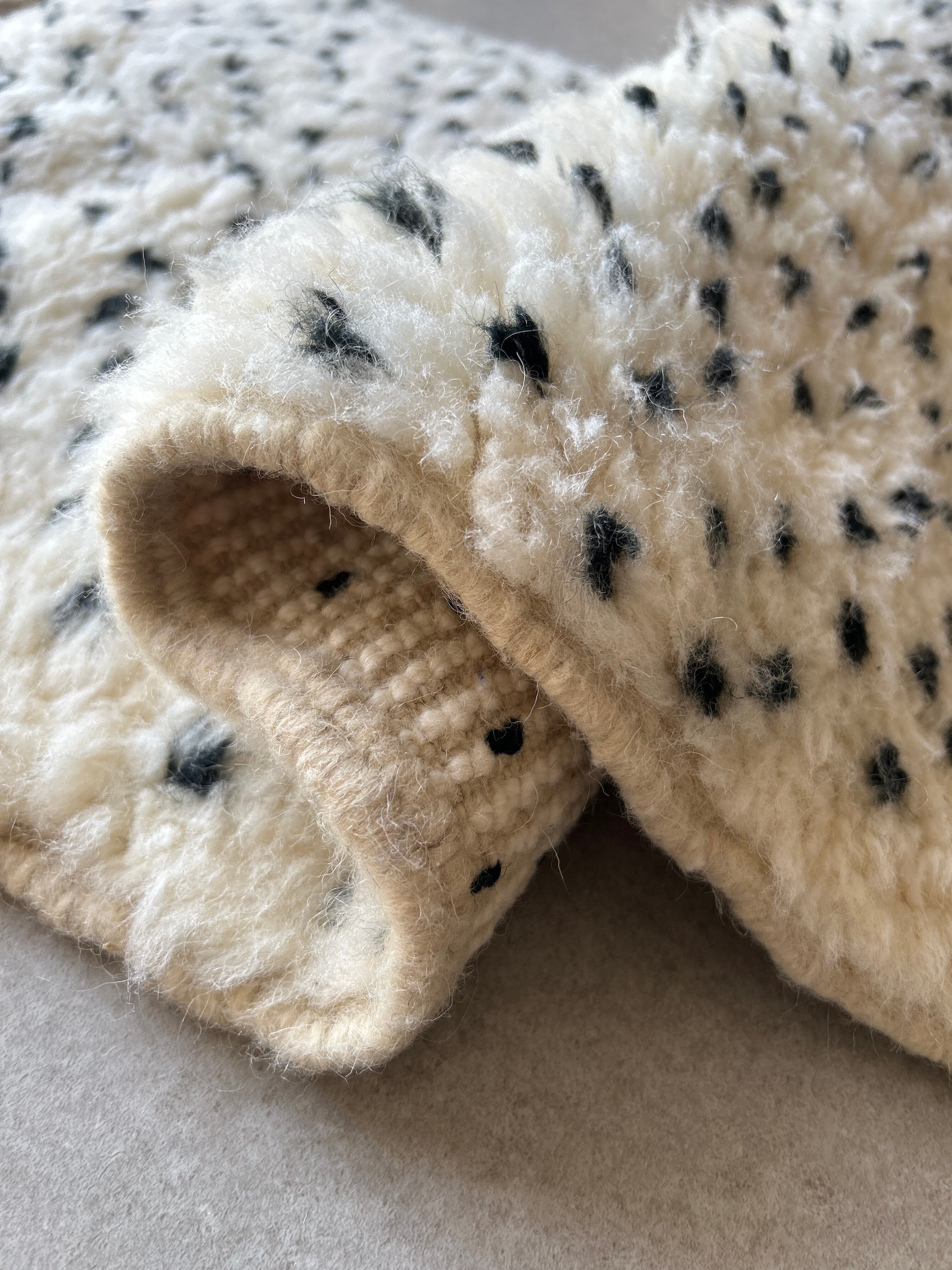 ナチュラルなアイボリーに黒のドット模様のモロッコラグ。