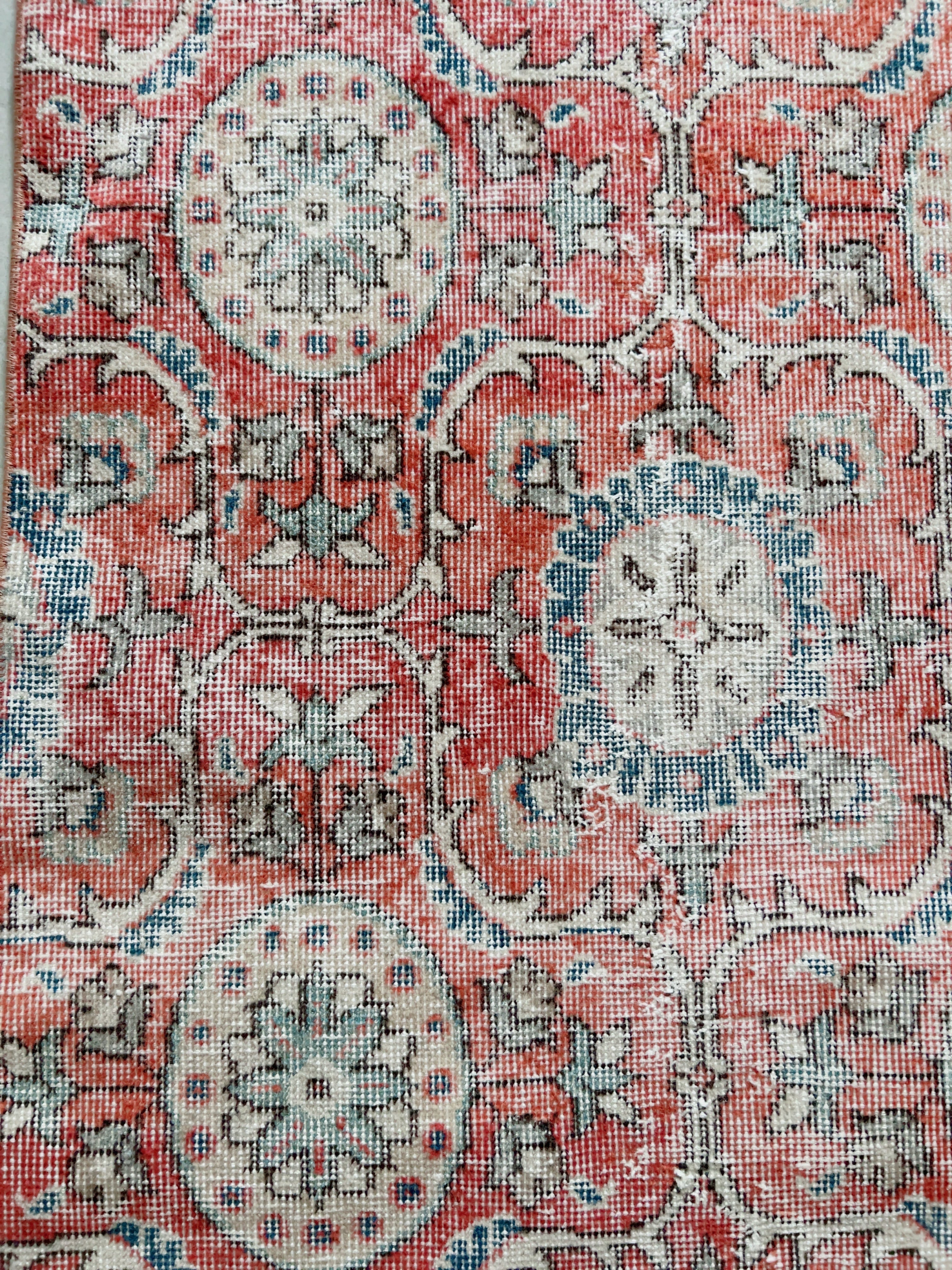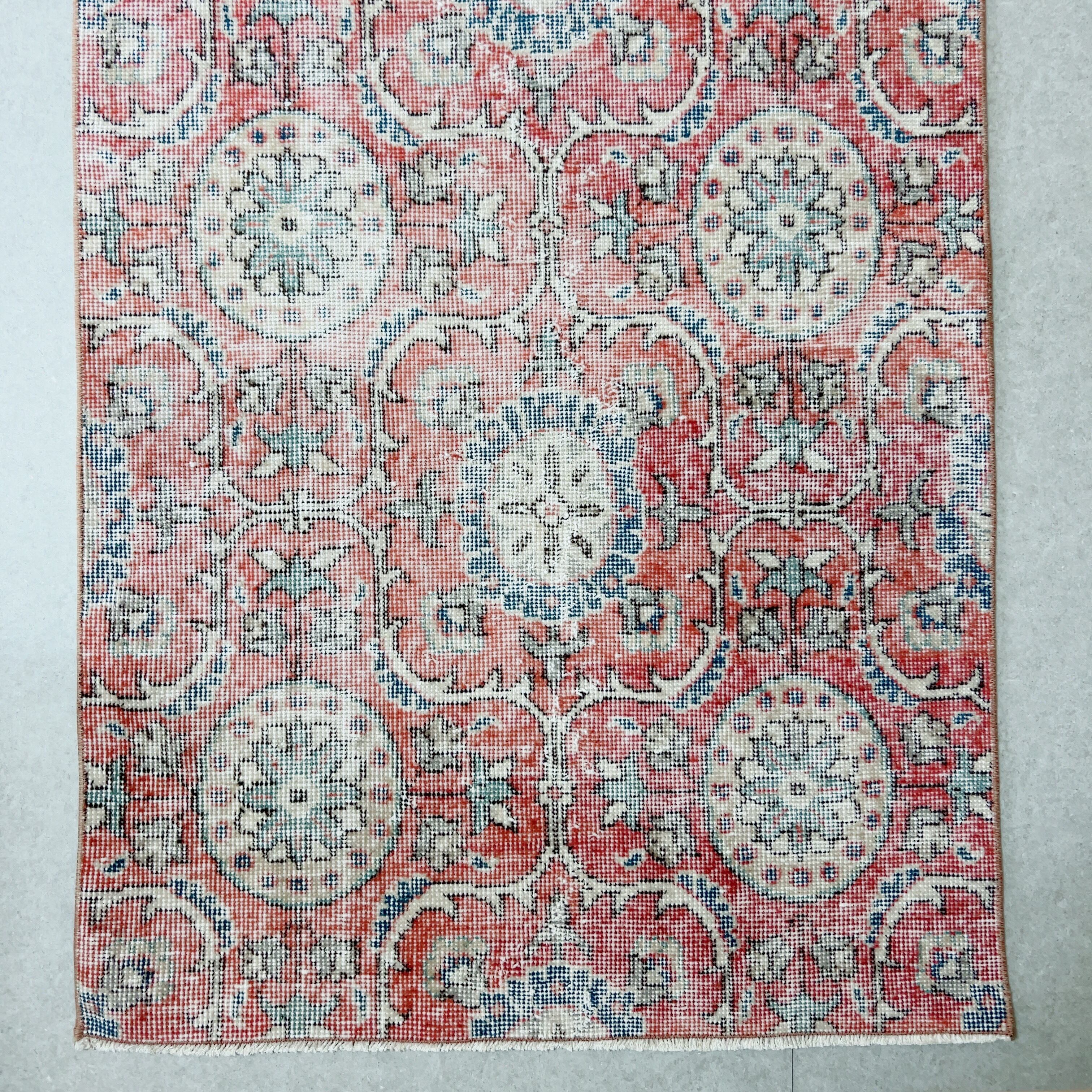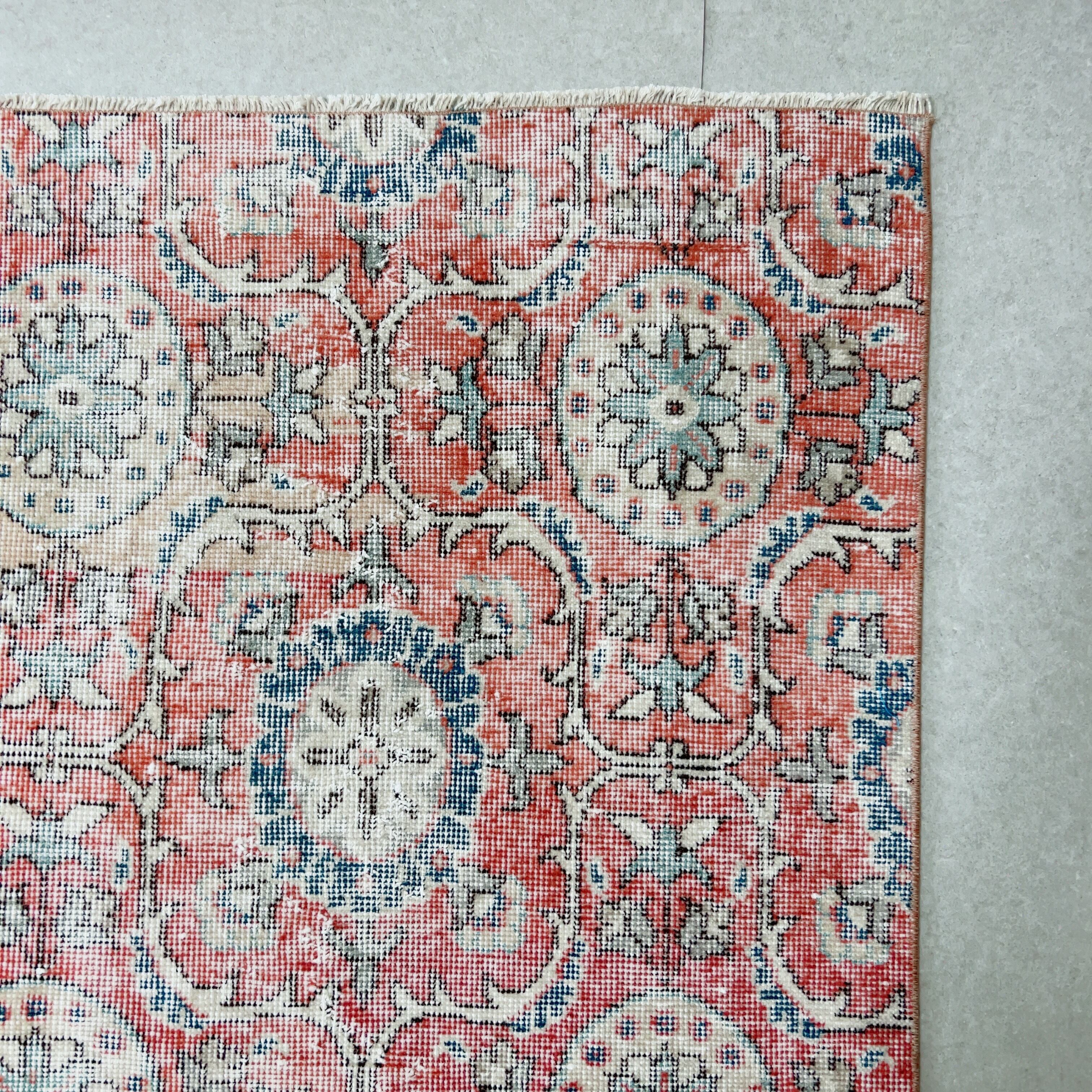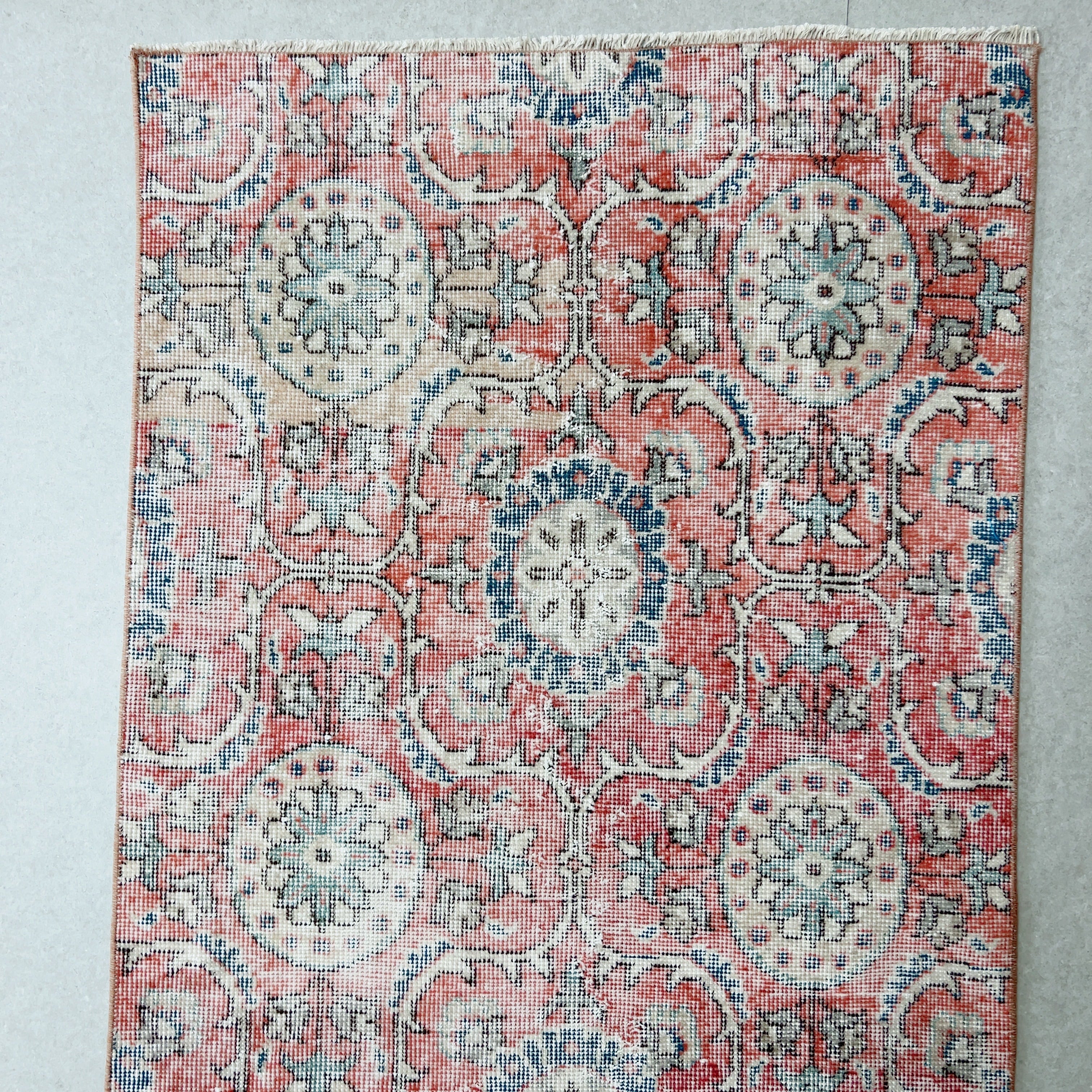 色褪せた赤がなんとも言えず素敵な雰囲気のラグ。